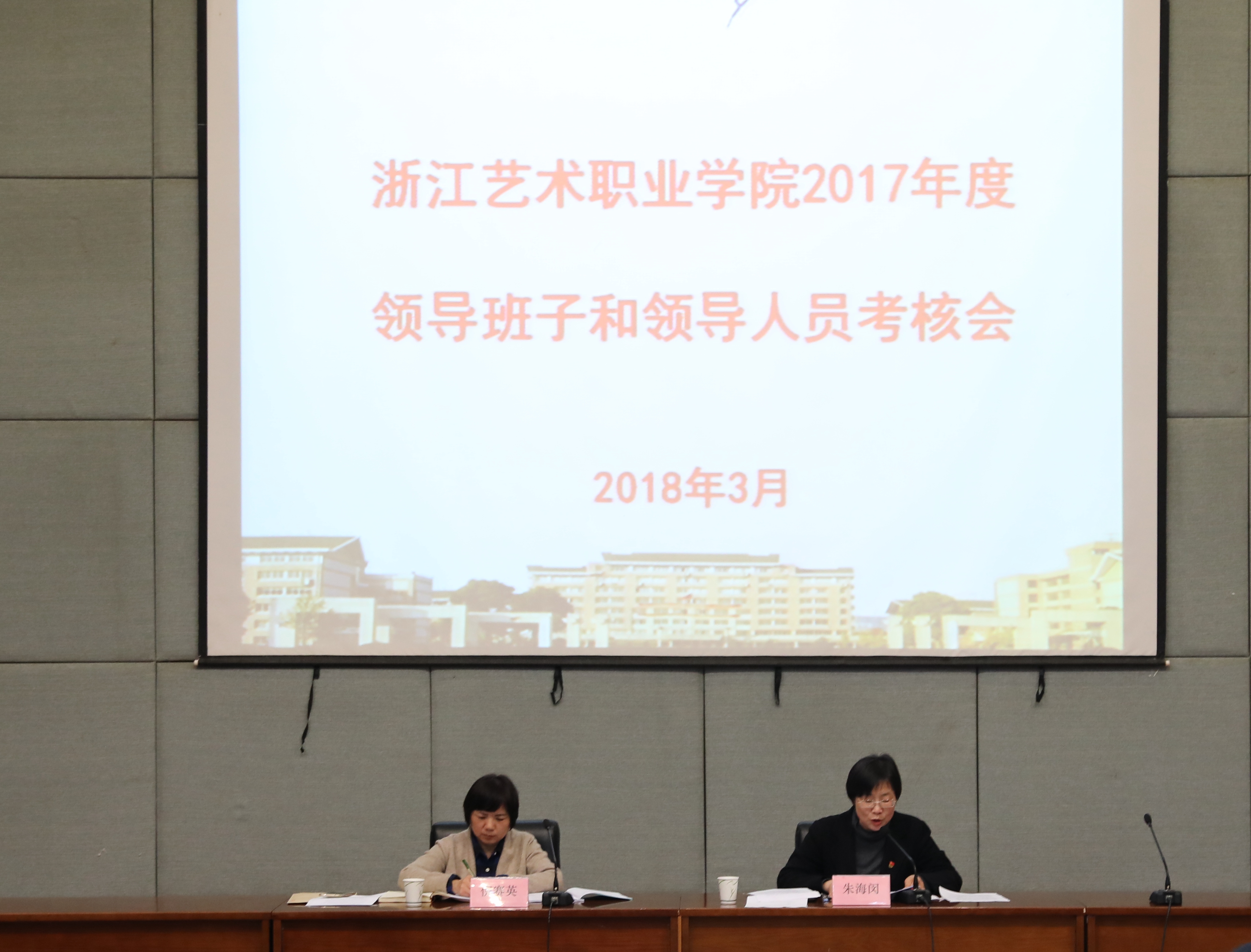 按照省委组织部、省委教育工委、省文化厅工作安排,3月14日下午,学校在图书信息中心报告厅召开2017年度领导班子和领导人员考核会。省文化厅人事处调研员倪赛英到会指导。校党委班子成员、中层处级干部、副高以上职称人员、民主党派负责人、教代会职代会执委会成员、近三年退休的校领导等参加会议。会议由校党委书记朱海闵主持。