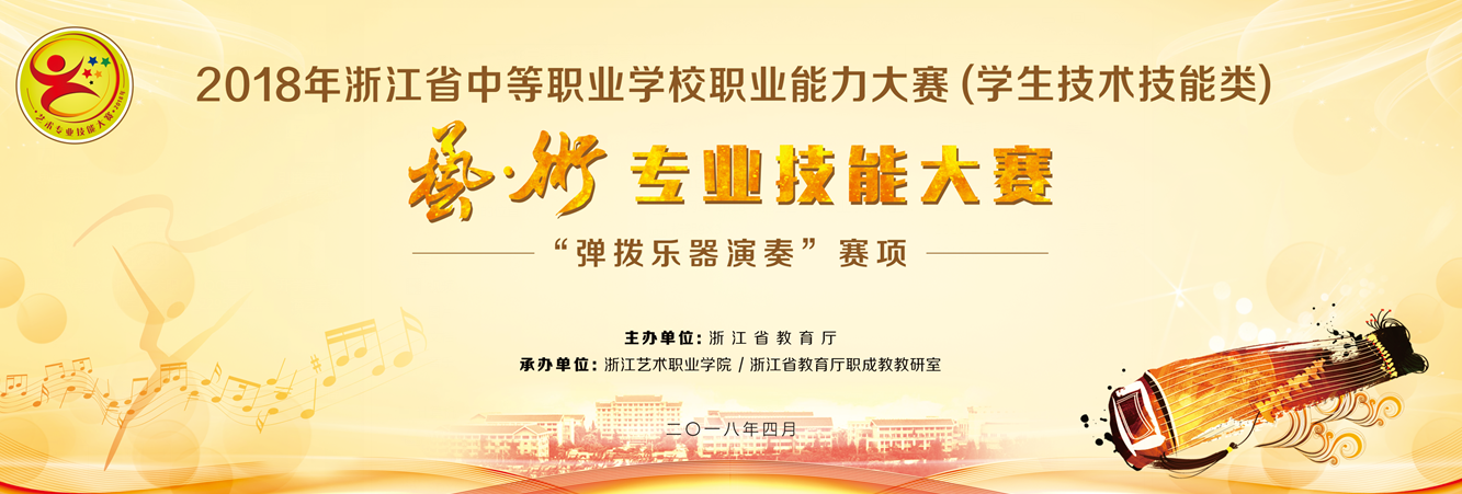 由浙江省教育厅主办、浙江艺术职业学院、浙江省教育厅职成教教研室承办的2018年浙江省中等职业学校职业能力大赛(学生技术技能类)“艺术专业技能(弹拨乐器演奏)”赛项暨全国职业院校技能大赛选拔赛将于明日(4月12日)在浙艺正式开赛。经过各地区选拔,来自全省的38位选手参加本次比赛。获得本赛项一等奖的选手将有机会参加6月份由浙艺首次承办的2018年全国职业院校技能大赛艺术专业技能(弹拨乐器演奏)赛项。