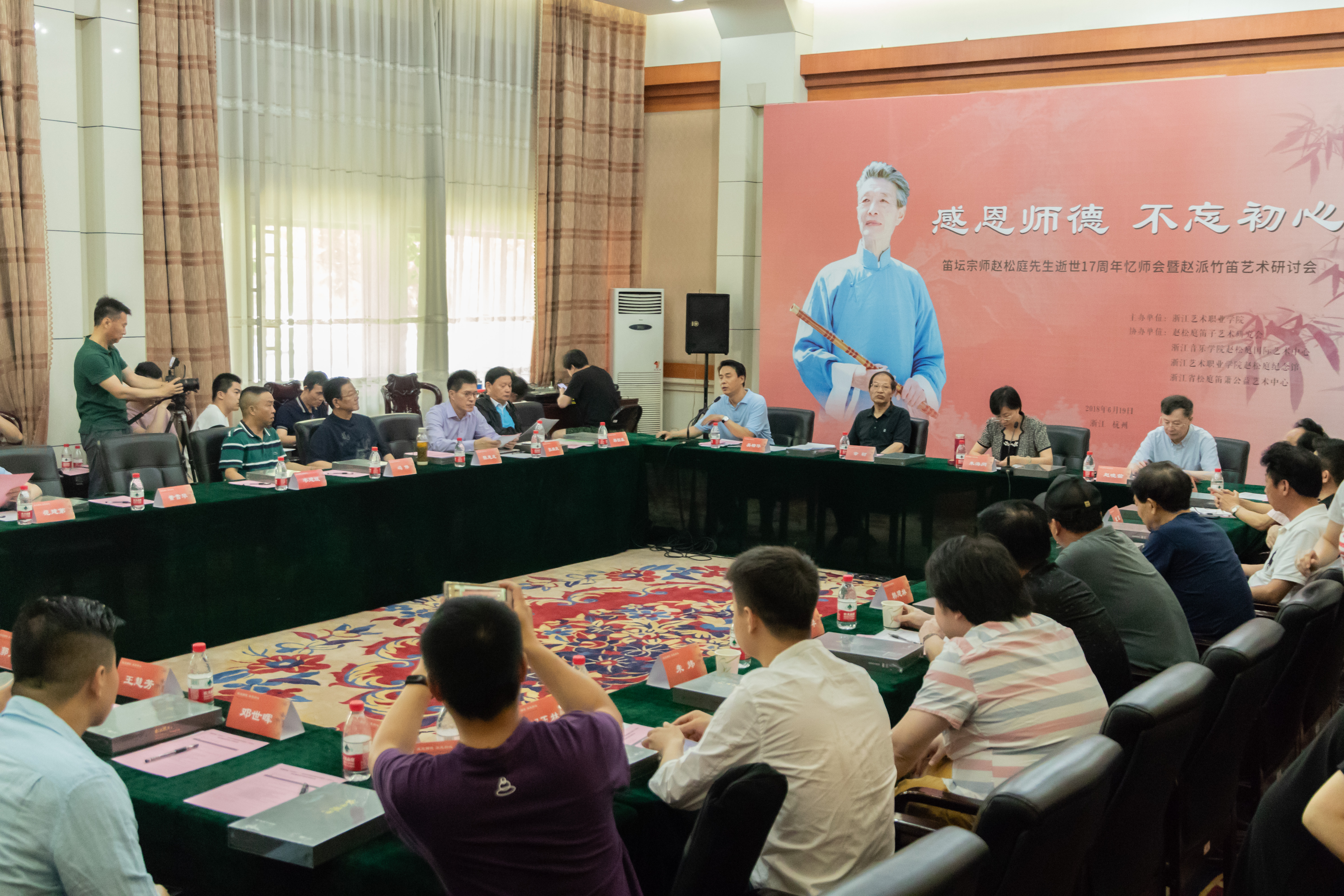 江南春远人何处,笛坛又闻鹧鸪飞。6月19日上午,浙江艺术职业学院5号楼贵宾室,纪念中国竹笛艺术里程碑式人物、赵派笛乐创始人赵松庭先生逝世17周年研讨会正在举行。赵门弟子40余人齐聚浙艺,围绕“感恩师德,不忘初心”主题,追忆先生师德师风,并进行赵派竹笛艺术研讨。