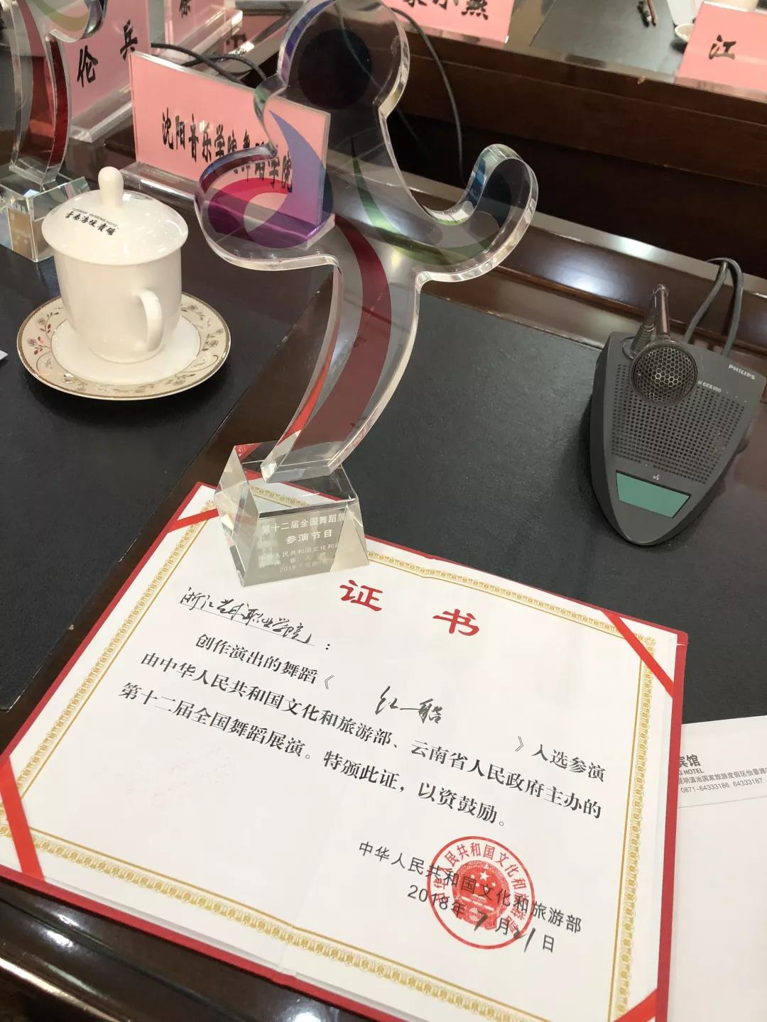 7月19日晚,第十二届全国舞蹈展演优秀舞蹈节目展在昆明剧院落下帷幕,来自全国各地优秀舞蹈创作和表演团队的各个节目在展演中一一亮相,在春城掀起了一场唯美的“舞蹈风暴”。我校原创群舞《红船》参加展演。《红船》以中共一大和嘉兴南湖红船为背景,以意象性的动作语汇描绘出中国共产党人对未来的美好希望和对新社会的憧憬。在全国展演舞台上,我校舞蹈系学生以舞传情,生动展现了“红船精神”,震撼表演赢得现场观众阵阵掌声。