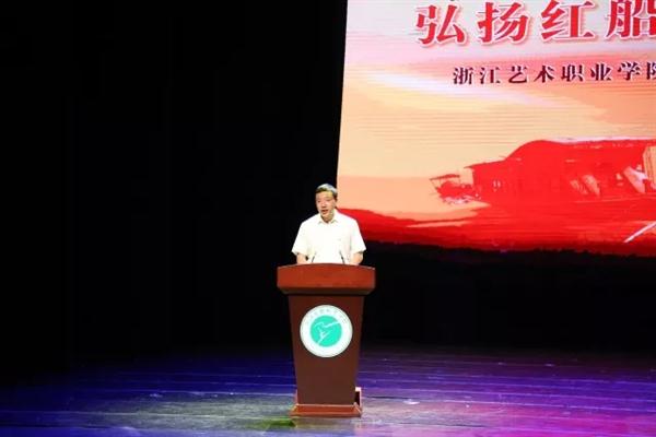 7月4日下午,“弘扬红船精神 争当时代先锋”浙江艺术职业学院庆祝中国共产党成立97周年主题党日活动在浙江实验艺术剧场举行。校党委班子成员、处科级干部、全体党员、教职工和学生代表参加活动。省文化厅党组副书记、副厅长、厅直属机关党委书记陈瑶,厅直属机关党委专职副书记吴莘超,厅直属机关党委委员、浙江图书馆党委书记徐洁等莅临指导。