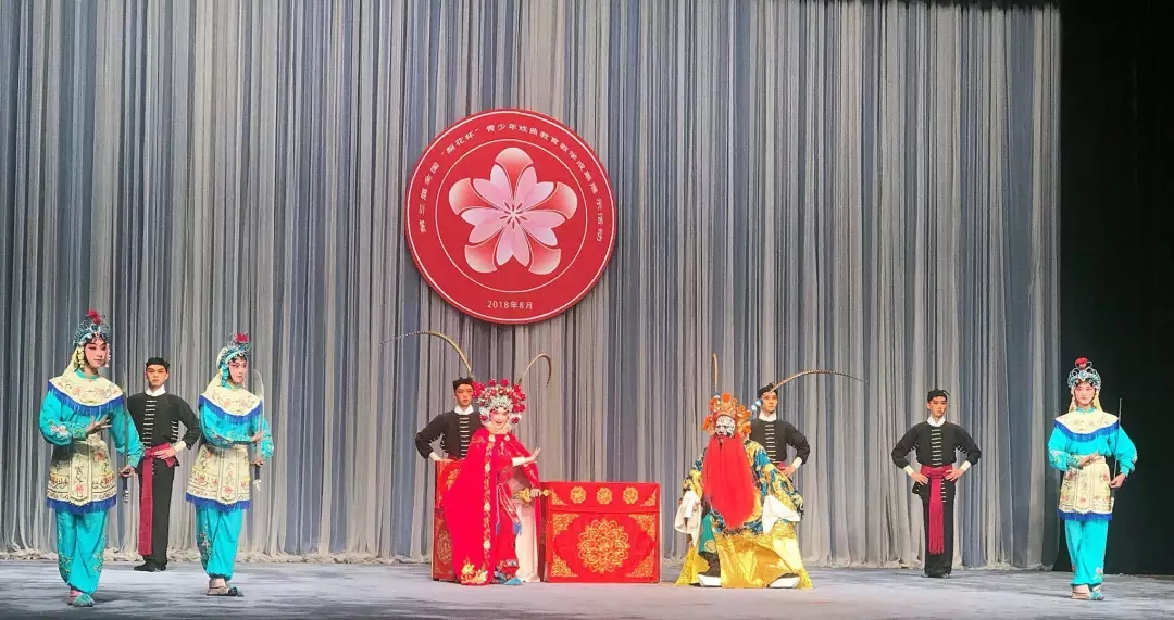 由文化和旅游部主办、文化和旅游部文化科技司和中国戏曲学院承办的第三届全国“梨花杯”青少年戏曲教育教学成果展示活动进行到第三天,继《情探·行路》演出后,浙江艺术职业学院戏剧系学生在21日、22日两天连续上演绍剧《女吊》、昆剧《通天犀》《牡丹亭·惊梦》、越剧《梁祝·回十八》。一所艺术院校的学生连续展示三大剧种,令观众啧啧称赞。