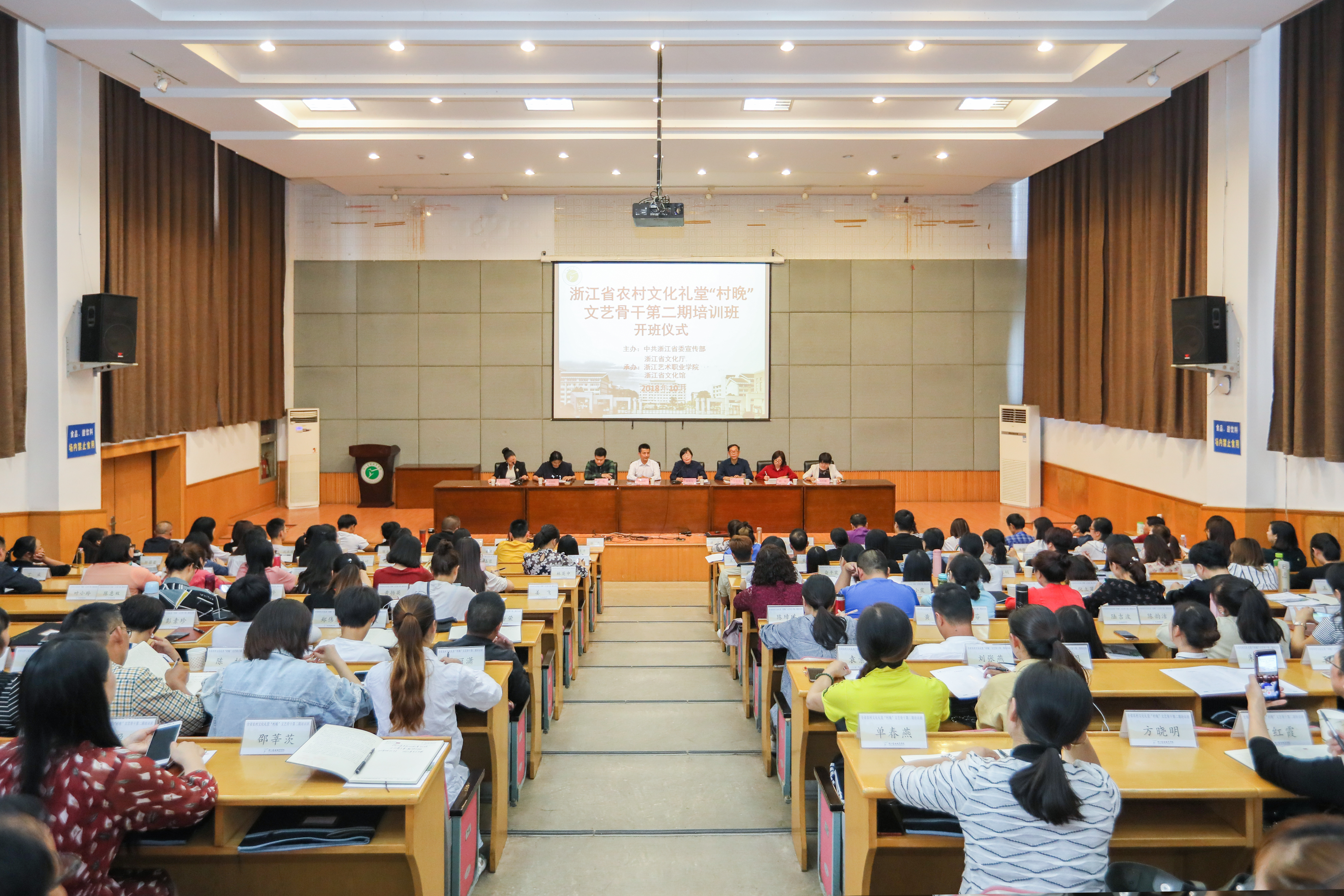 10月8日下午,由中共浙江省委宣传部、浙江省文化厅主办,浙江艺术职业学院、浙江省文化馆共同承办的浙江省第二期农村文化礼堂“村晚”文艺骨干培训班开班仪式在浙江艺术职业学院图信报告厅举行。来自杭州、宁波、温州、嘉兴、丽水、衢州、岱山等地的151名学员,将在浙艺接受为期5天的培训。