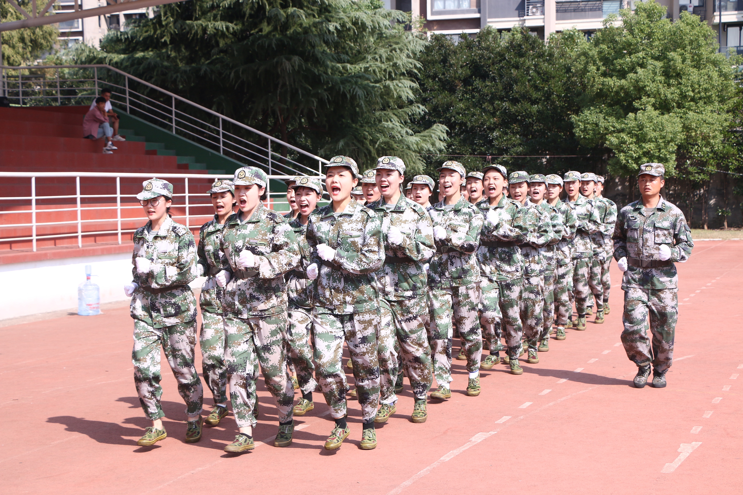 陈贝贝在接受采访时表示,教官做了很多努力,保证军训顺畅进行,同学们也从开始的纪律性较差,队列素质较弱,到最后完成了自我的飞跃。在队列会操中各个方阵也表现得非常优异,这十几天,每个同学都在坚持,都在努力。他讲到军训期间有几天下雨,有几个班的同学在彩排中比其他班的同学稍微落后一些,他们就主动要求还要在雨中进行训练,教官们也很感动。这份感动同样也深深植根到他心里。