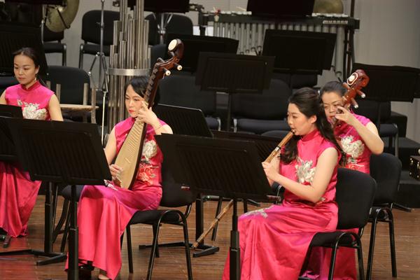 江南丝竹《中花六板》《吹歌》根据江南传统名曲《老六板》《骑驴吹仔》改编而来,由音乐系副主任高澄明、民乐教研室主任王慧芳等教师共同演奏,为音乐会带来了缕缕清新柔美的风。