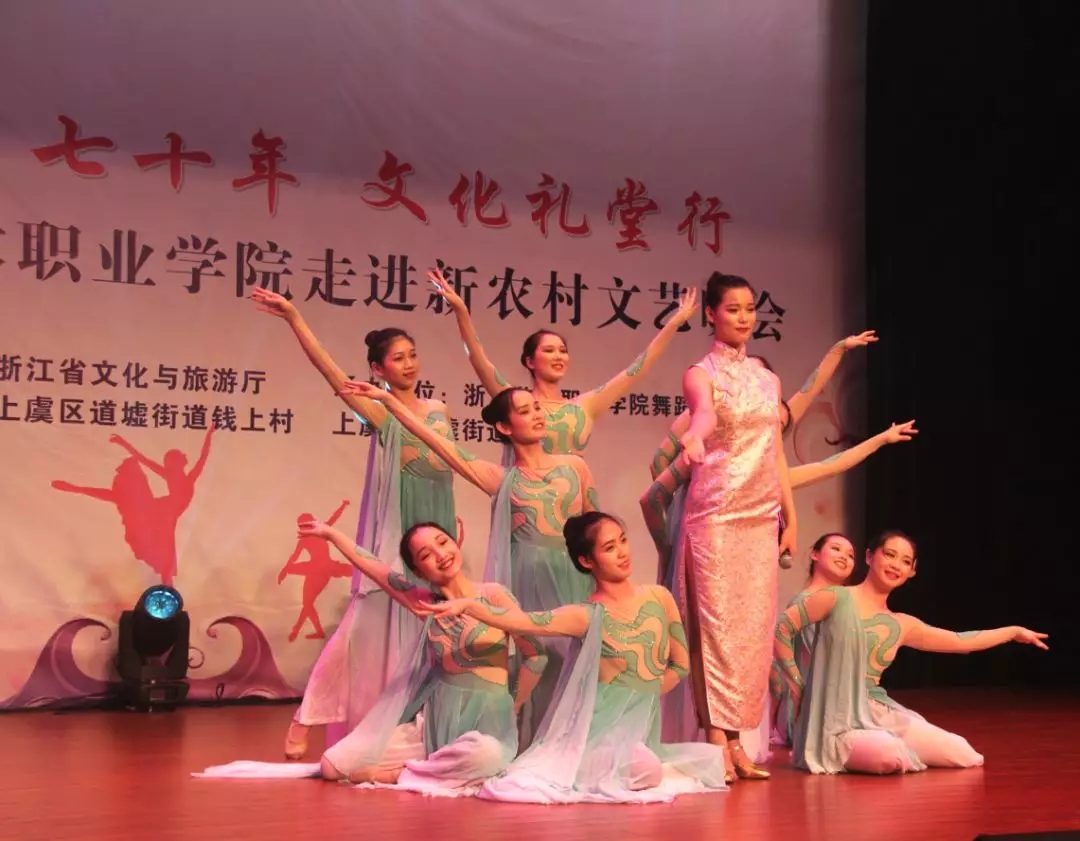 壮丽70年,文化礼堂行,这个夏天,还未放暑假,浙江艺术职业学院师生就厉兵秣马,为暑期赶赴浙江各地农村文化礼堂做准备,助力乡村文化振兴,献礼中华人民共和国成立70周年。7月7日,文化管理系17、18级定向培养乡镇文化员走进上虞道墟钱上村,进行综合汇报演出;7月11日,舞蹈系上演舞蹈专场。两场演出,演员青春,歌舞欢快,现场掌声阵阵、气氛热烈。