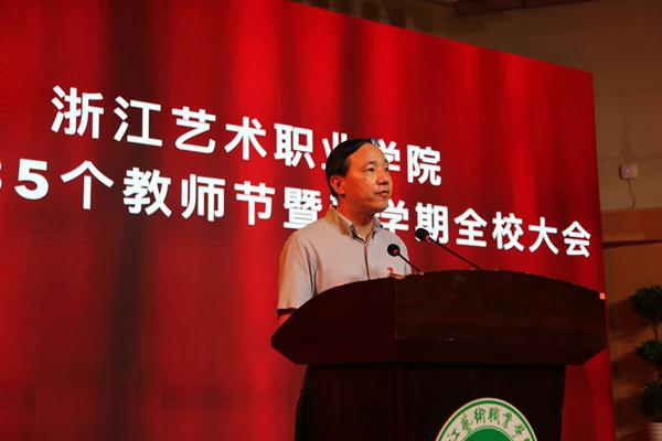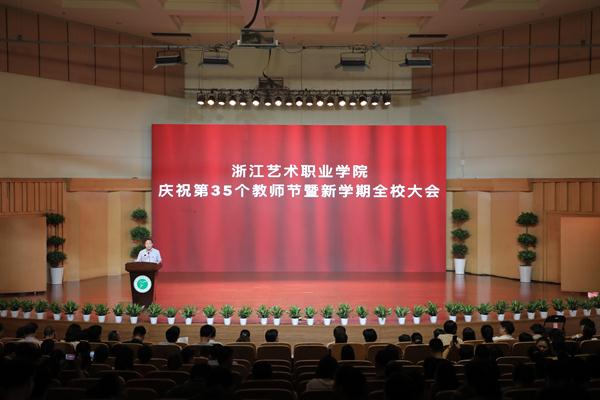 庆祝新中国七十华诞,弘扬新时代尊师风尚。9月11日下午,浙江艺术职业学院庆祝第35个教师节暨新学期全校大会在校音乐厅举行。会议表彰了先进集体和优秀个人、上一学年获得省级以上重大比赛荣誉等集体和个人。会上为30年教龄老教师代表颁发纪念牌。优秀教师代表进行了教育教学经验分享。校领导作讲话,要求进一步团结凝聚广大教职员工不忘初心、牢记使命,为高水平建成国内一流高等艺术院校不懈奋斗,以优异成绩向新中国七十周年华诞献礼。