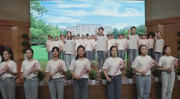 一年来新入职教师面向国旗宣誓入职。