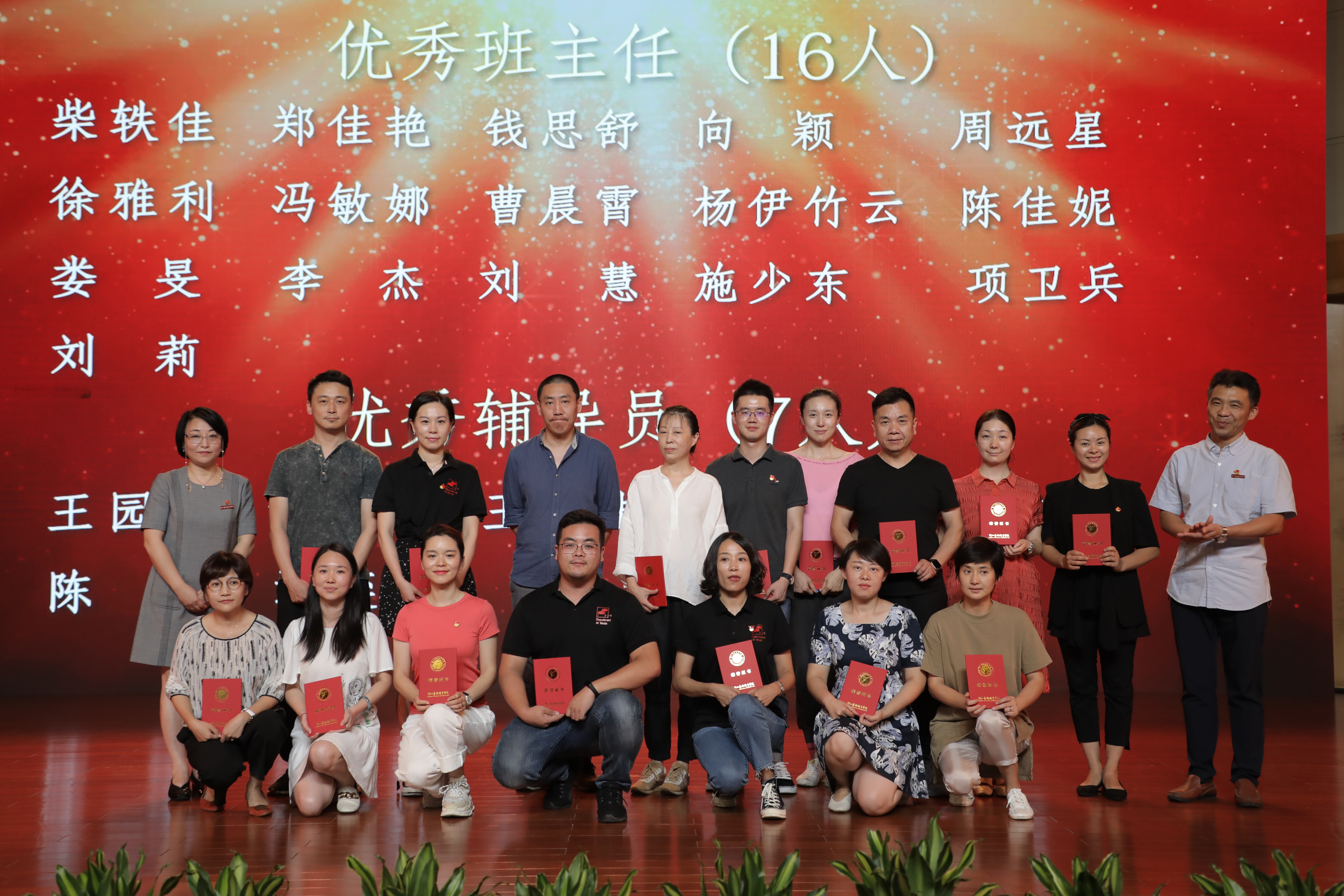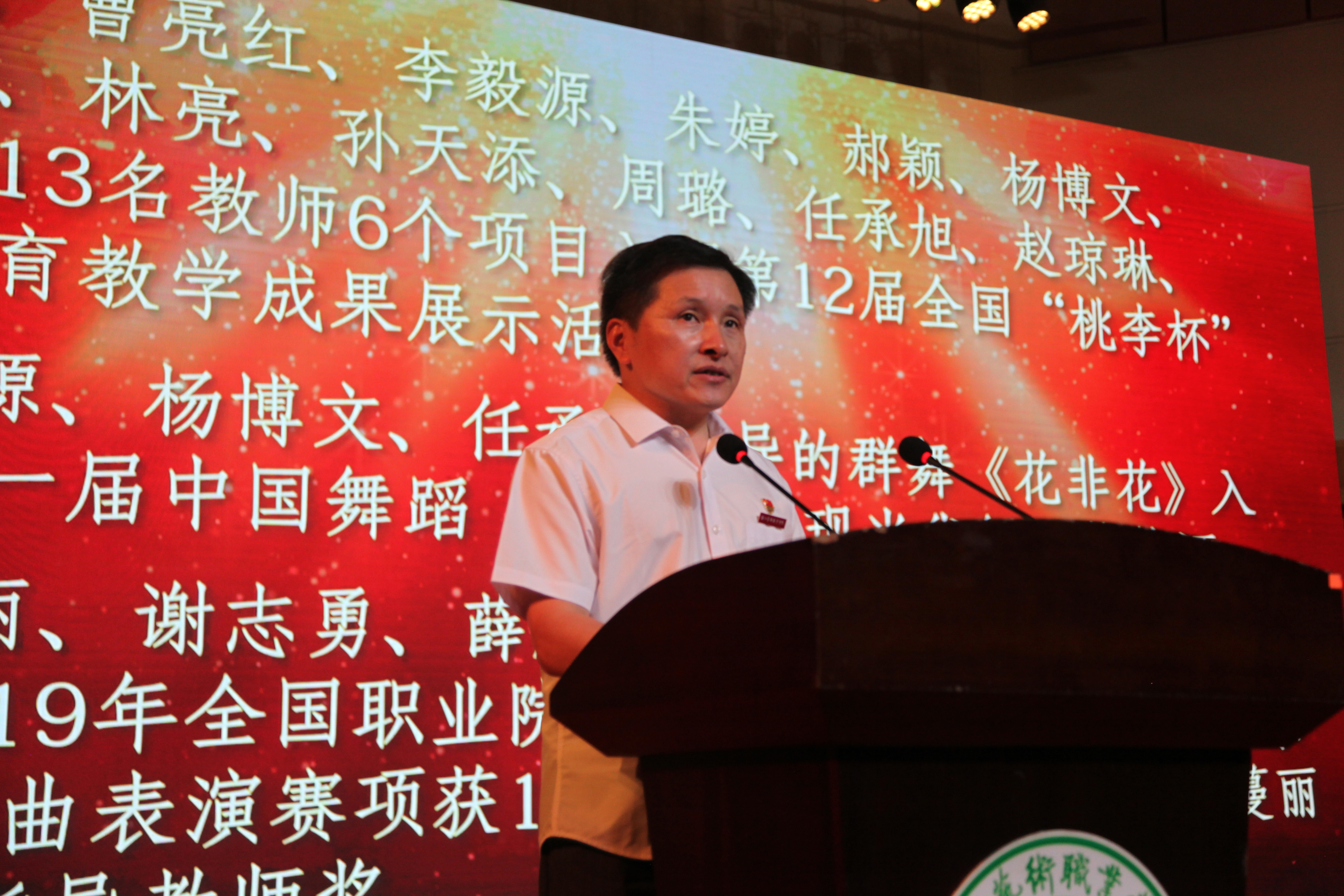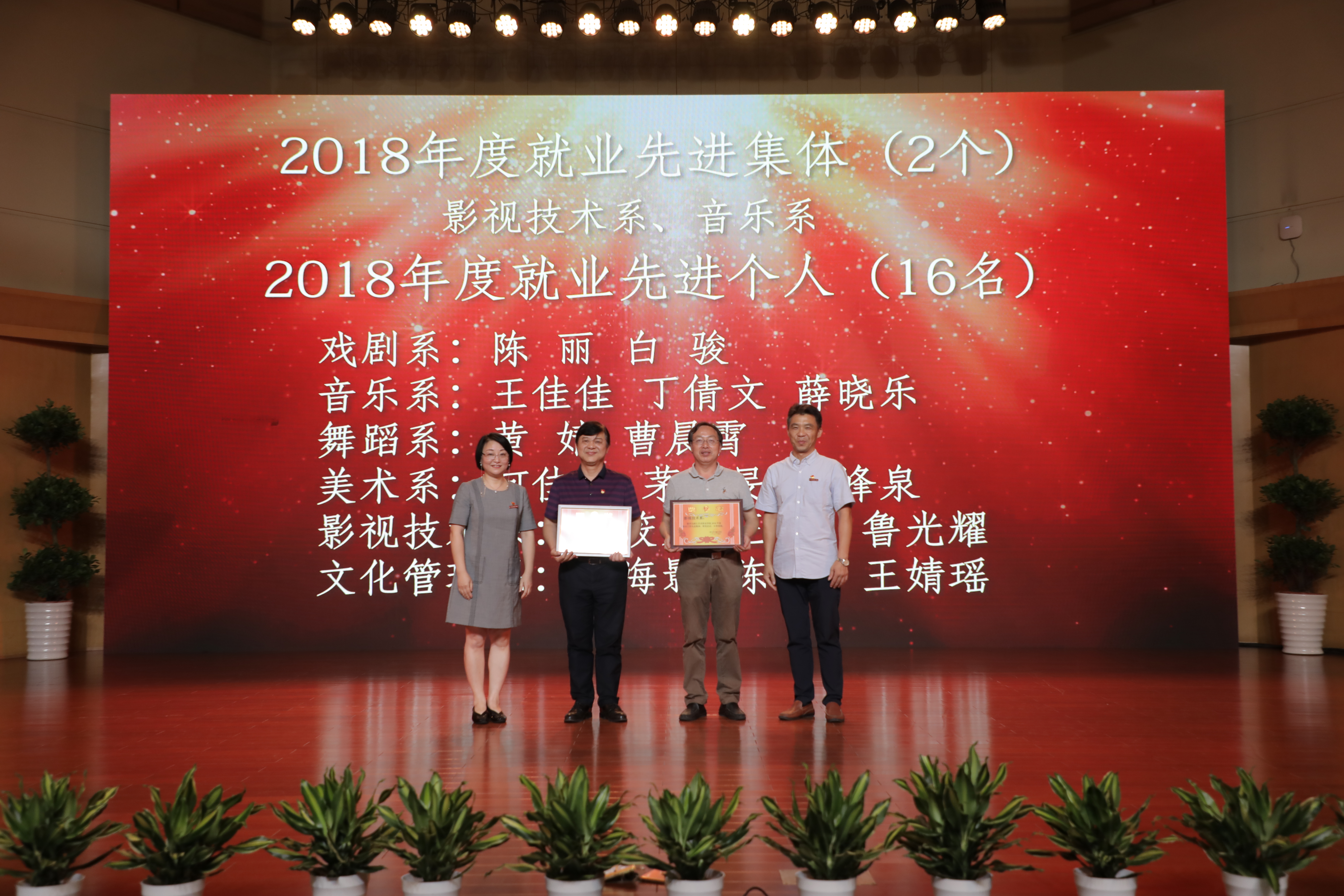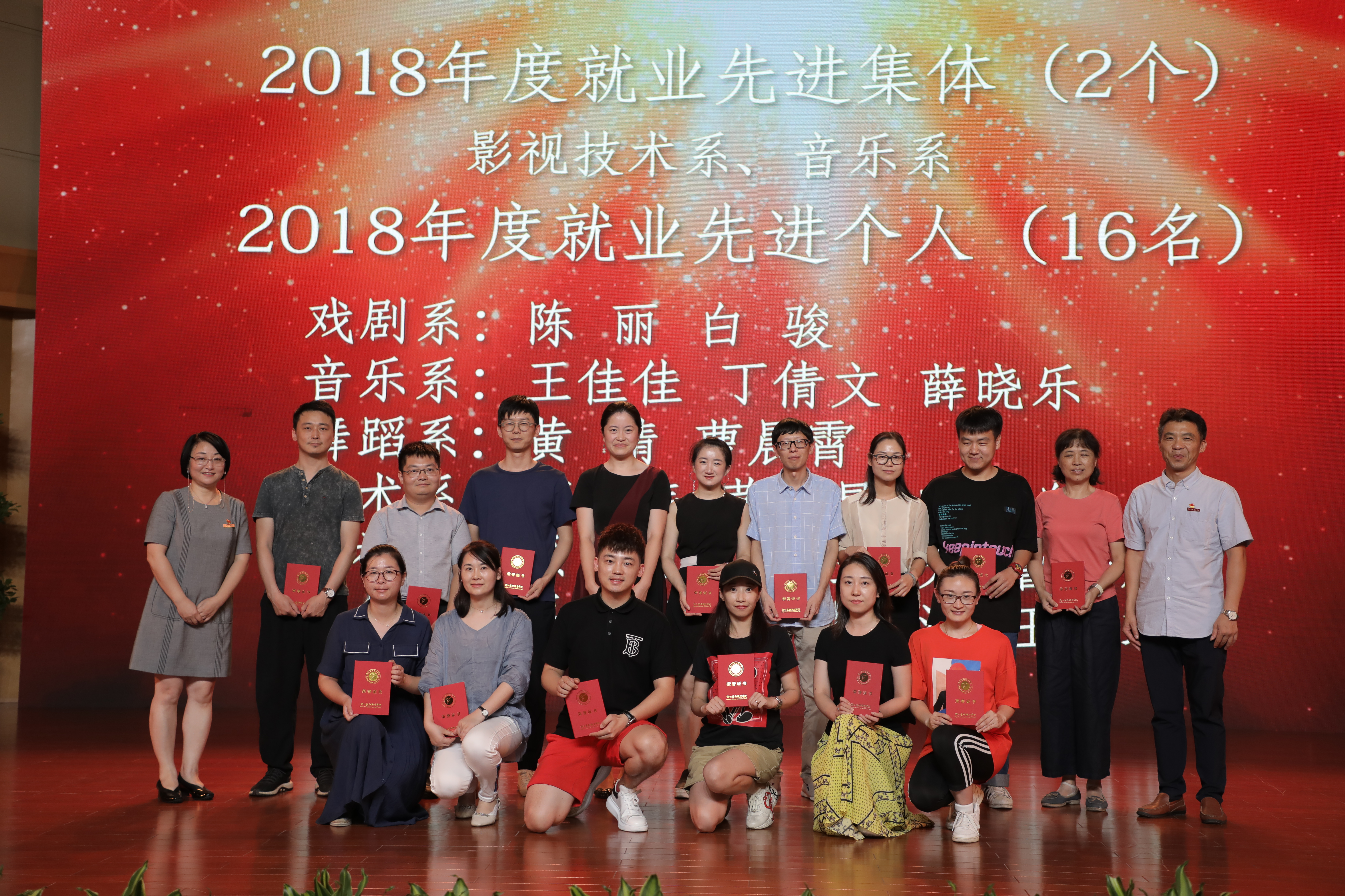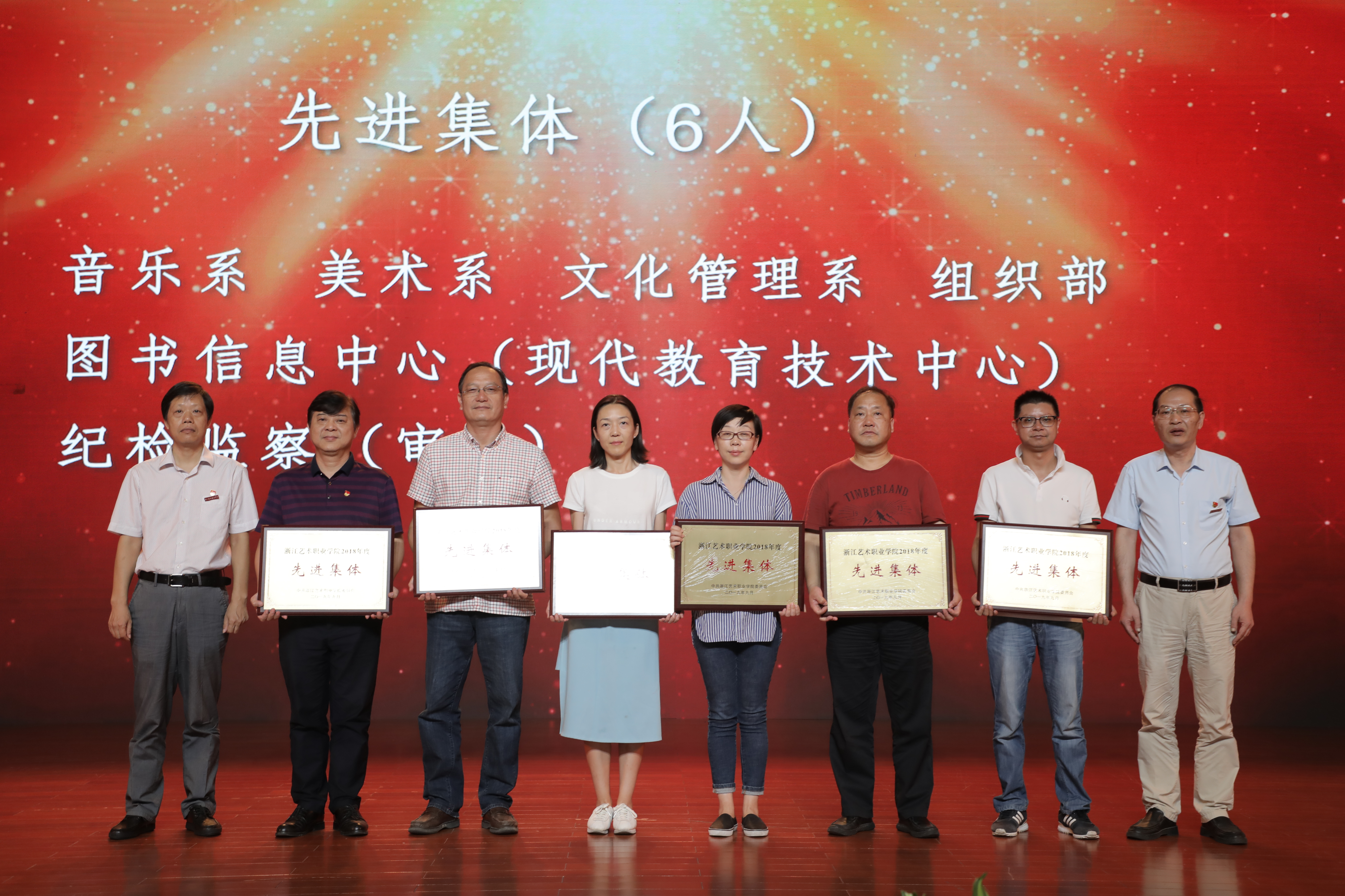 大会表彰了过去一学年学校教学、科研、人才培养、管理服务等方面工作取得突出成绩的先进集体和个人。党委副书记夏开堂主持大会,校领导为先进集体和个人颁奖。音乐系等6个部门获评2018年度校级先进集体,刘发奎等7人获评2018年度优秀干部,荆芳等22人获评2018年度优秀教师,傅伟兴等21人获评2018年度优秀教育工作者,柴轶佳等16人获评2018年度优秀班主任,王园园等6人获评2018年度优秀辅导员,张晓娟等10人获评2018年度校课堂教学优秀奖。大会还宣读了在学校重大比赛中获奖的团队和指导教师,及2018年度学校就业先进集体、先进个人,通报表彰了获得厅以上优秀团队和个人奖项。