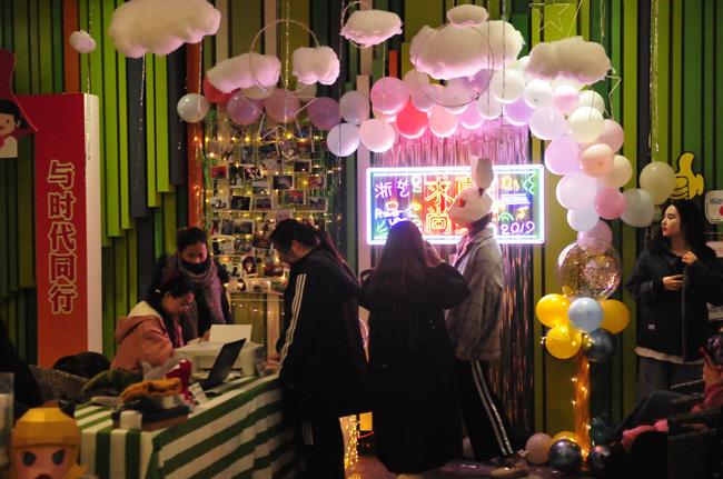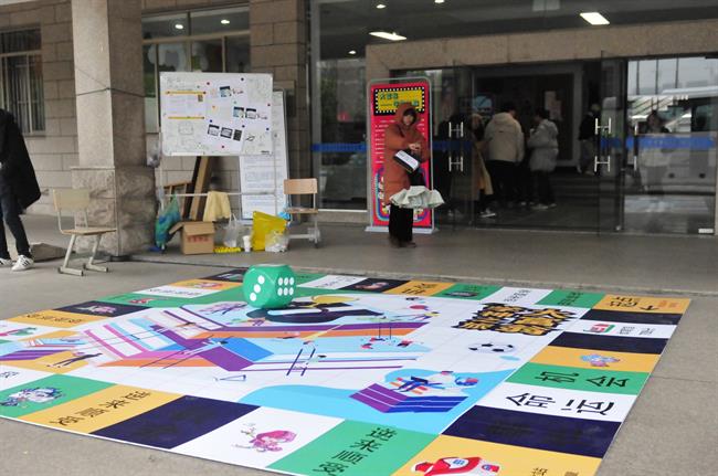 17级策划班同学把毕业展分为了四个阶段:第一阶段推广《人生一站》公众号;第二阶段在8号楼前举行滑滑车大赛造势;第三阶段《人生一站》MV发布;第四阶段在8号楼举办展览。他们的主攻方向是新媒体运营和活动策划,因此毕业展的形式以现场活动和新媒体运营为主。用两个多月的时间独立设计了“大富翁——学神之旅”游戏棋和“人生一站、盒其短暂”系列盲盒,学神大富翁游戏棋结合了学分制、建国70周年大事件、浙艺校园建筑、六系特色等元素,寓教于乐。盲盒内则放置了悦木文创产品和同学们手工制作的古风饰品等,每一个手工饰品都有自己的名字,例如鸿鹄志、长安花等,通过购买或参与活动的方式可以获得盲盒。盲盒在日常生活中的运用模式已经非常成熟,在已知情况下的未知非常迷人。