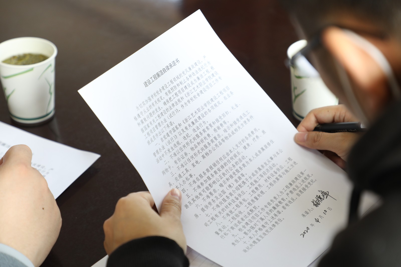 会上,基建项目工作专班成员分别签订了《建设工程廉洁自律承诺书》。