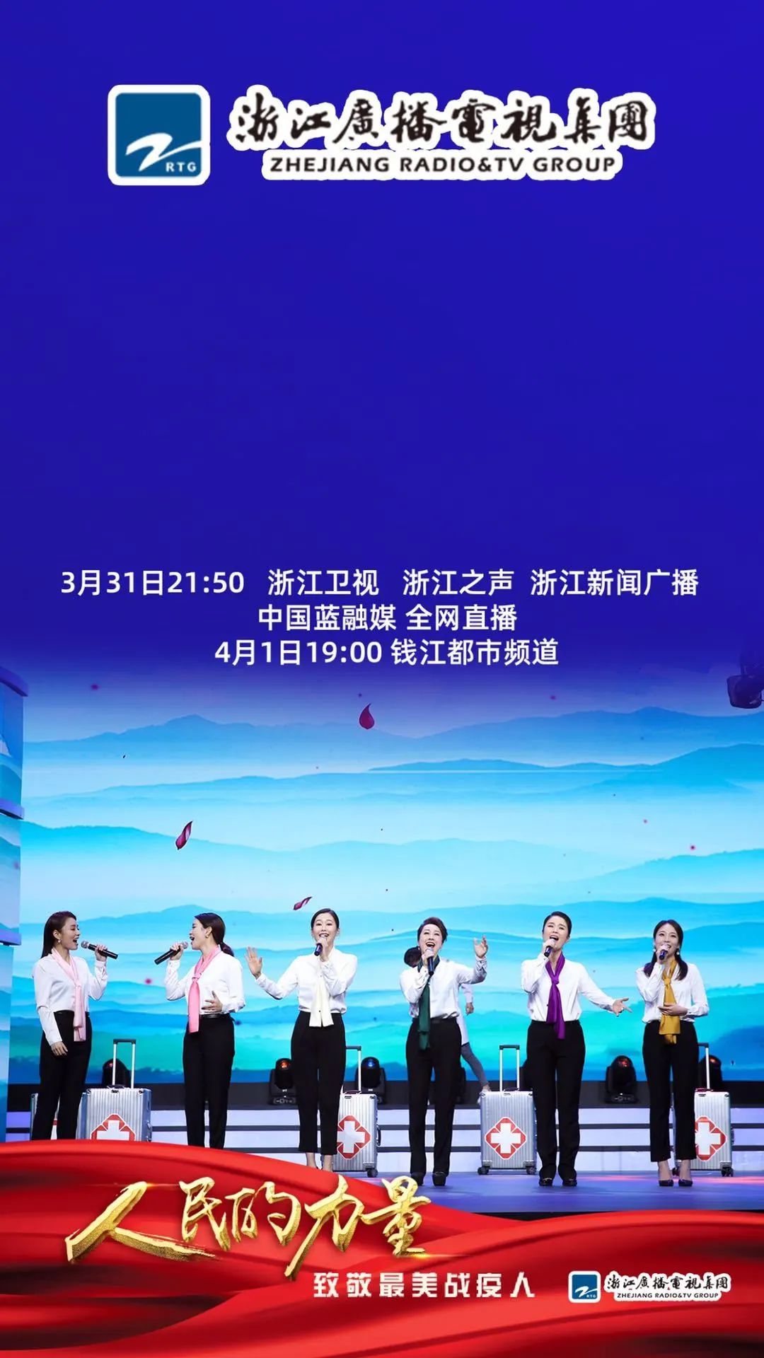 歌战疫之英勇,诵平凡之伟大。由浙江广播电视集团出品,浙江之声、电视钱江都市频道联合制作的“人民的力量——《星空朗读》致敬最美战疫人”于331日晚登陆浙江卫视,浙江之声、浙江新闻广播、中国蓝融媒同步播出。41日,浙江电视台钱江都市频道精彩重温。此节目汇集了浙江主持界、音乐界、话剧界等演员阵容。浙艺教师钱思舒、韩紫娟在节目中献唱《我把最小的娃送上了战场》。为了迎接抗疫英雄凯旋,韩紫娟还与浙艺校友吴晓芳、吴群参与歌曲《英雄凯旋》的录制,歌曲在学习强国、中国蓝新闻等媒体上发布。