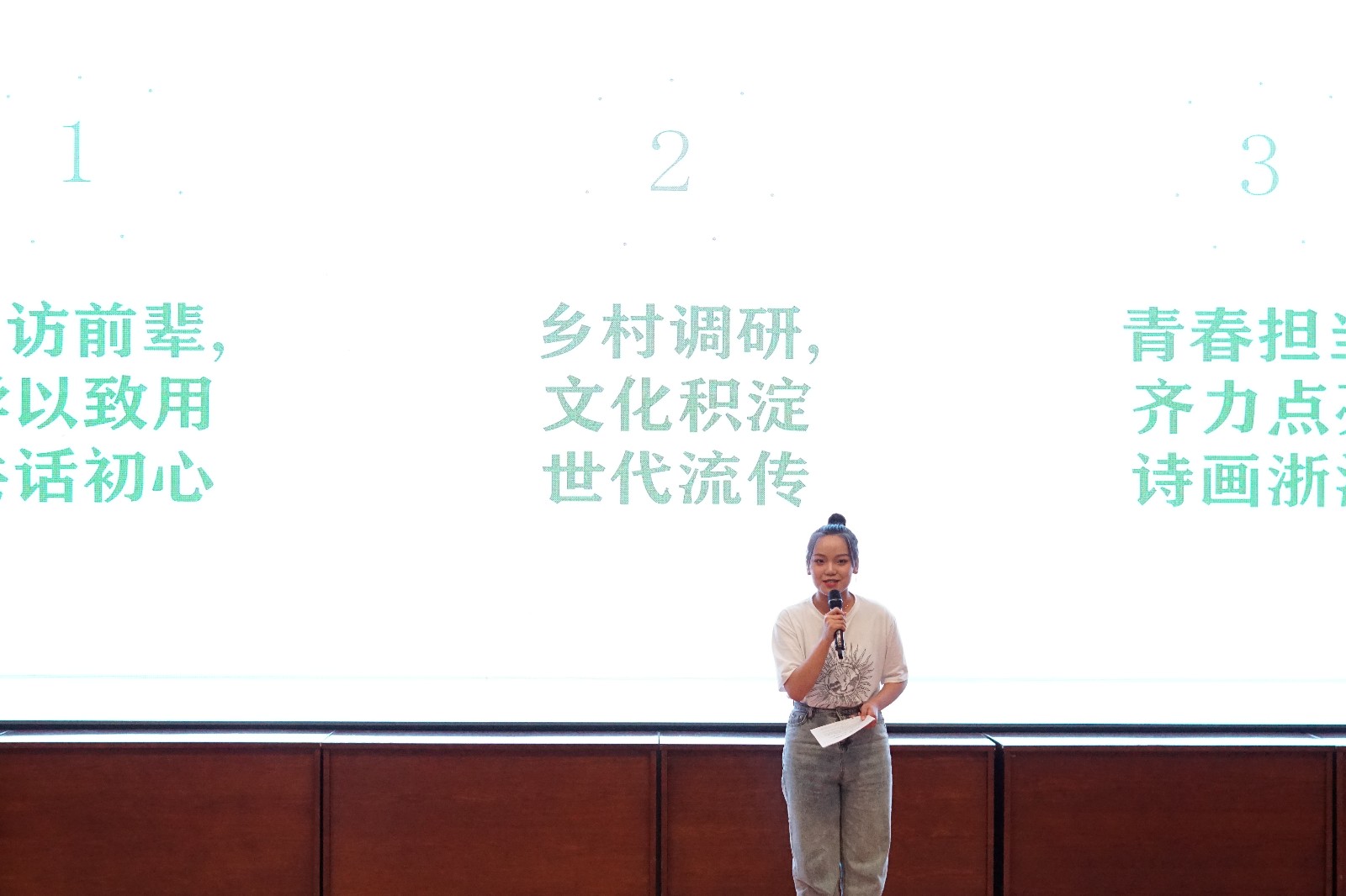 比赛进行得如火如荼,现场的观众也都沉醉其中,文化管理系杨阳同学表示:“我深深被感动了。我感受到了新时代下,浙艺学子在实践中投身文化振兴、脱贫攻坚的勇气和力量,我一定会向他们学习,以青春之我投身祖国建设。”