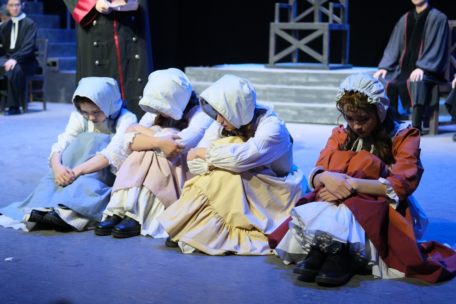 剧情的最后,缓缓出现的审讯台,沉静淡然的殉道者瑞贝卡女士和普罗克托代表高尚的灵魂,他们始终相信真正的正义和诚实。一幕一幕的场景变换以及场上演员的真情演出,带领观众感受着正义和邪恶的冲突,光明与黑暗的较量。就像剧中所说的那样:“我们将永远坚持正义,永远相信未来,就像相信绞刑架下有奋起反抗的伟大灵魂。”