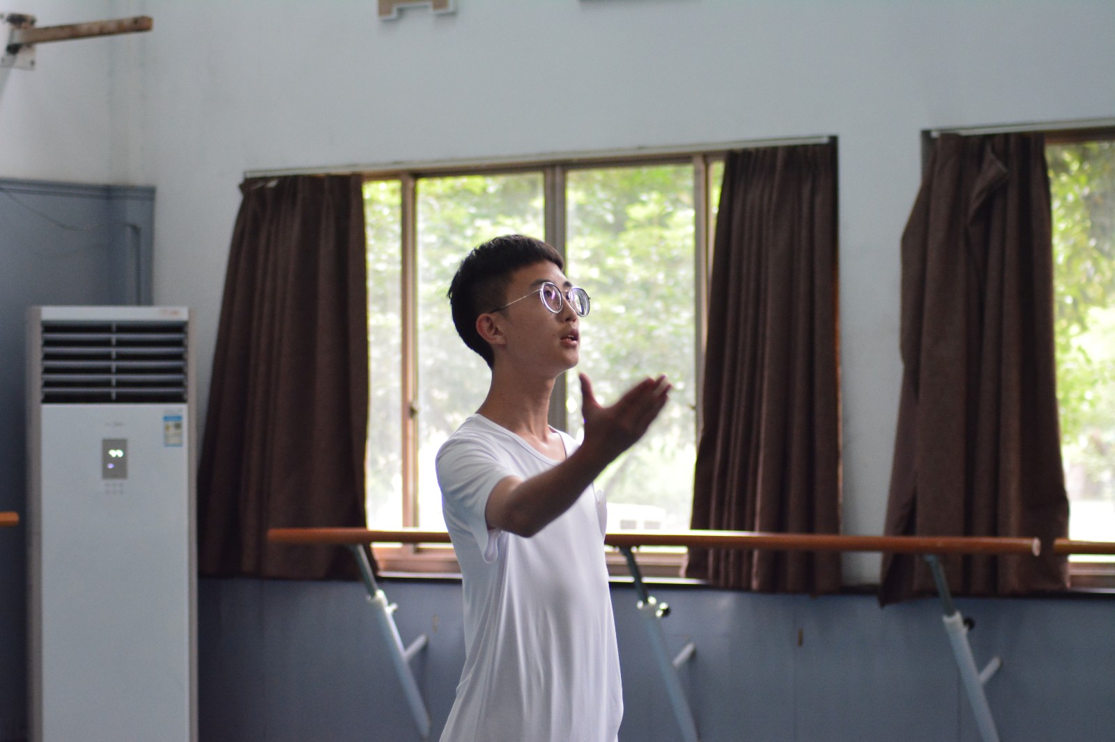 清晨,5号楼内,考官、考务人员、志愿者早早就绪等待考生进场。候考室内,志愿者宣讲了考试流程,贴心地给候考同学分发小零食,缓解紧张情绪。考生们抓紧时间练习舞蹈,朗诵台词,开嗓,耐心等待考试。音乐剧专业需要有一定艺术专业基础,专业面试从声乐、形体、台词、视唱练耳四个方面综合考量考生的专业素质,考官由浙艺和浙传的专业老师共同组成。