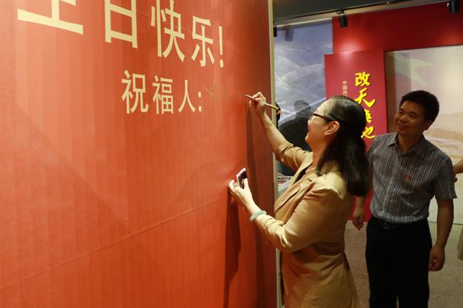 本次展览由美术系承办,是学校庆祝中国共产党百年华诞主要活动之一。整个展览分为“开天辟地”“改天换地”“翻天覆地”“惊天动地”四大篇章,涵盖了美术系舞台艺术设计与制作专业、服装与服饰设计专业、广告艺术设计专业、动漫设计专业及环境艺术设计专业等五个展示板块的美术作品。舞台艺术设计与制作专业展示板块以绘景的形式生动地展现了“中共一大会址”、“嘉兴南湖红船”和“革命圣地延安宝塔山”三个重要的历史地点与场景;服装与服饰设计专业展示板块结合专业教学开展《清溪谣》《黎明前的诀别》等剧目的服装服饰设计,以舞台服装实物进行呈现;广告艺术设计专业展示板块主要展出反映新时代新风貌的主题海报;动漫设计专业展示板块运用插画栩栩如生地再现了改革开放时期20位改革先锋人物;环境艺术设计专业展示板块通过资料查找和模型搭建等程序,等比例缩放手工制作了天安门及人民大会堂的实物模型。