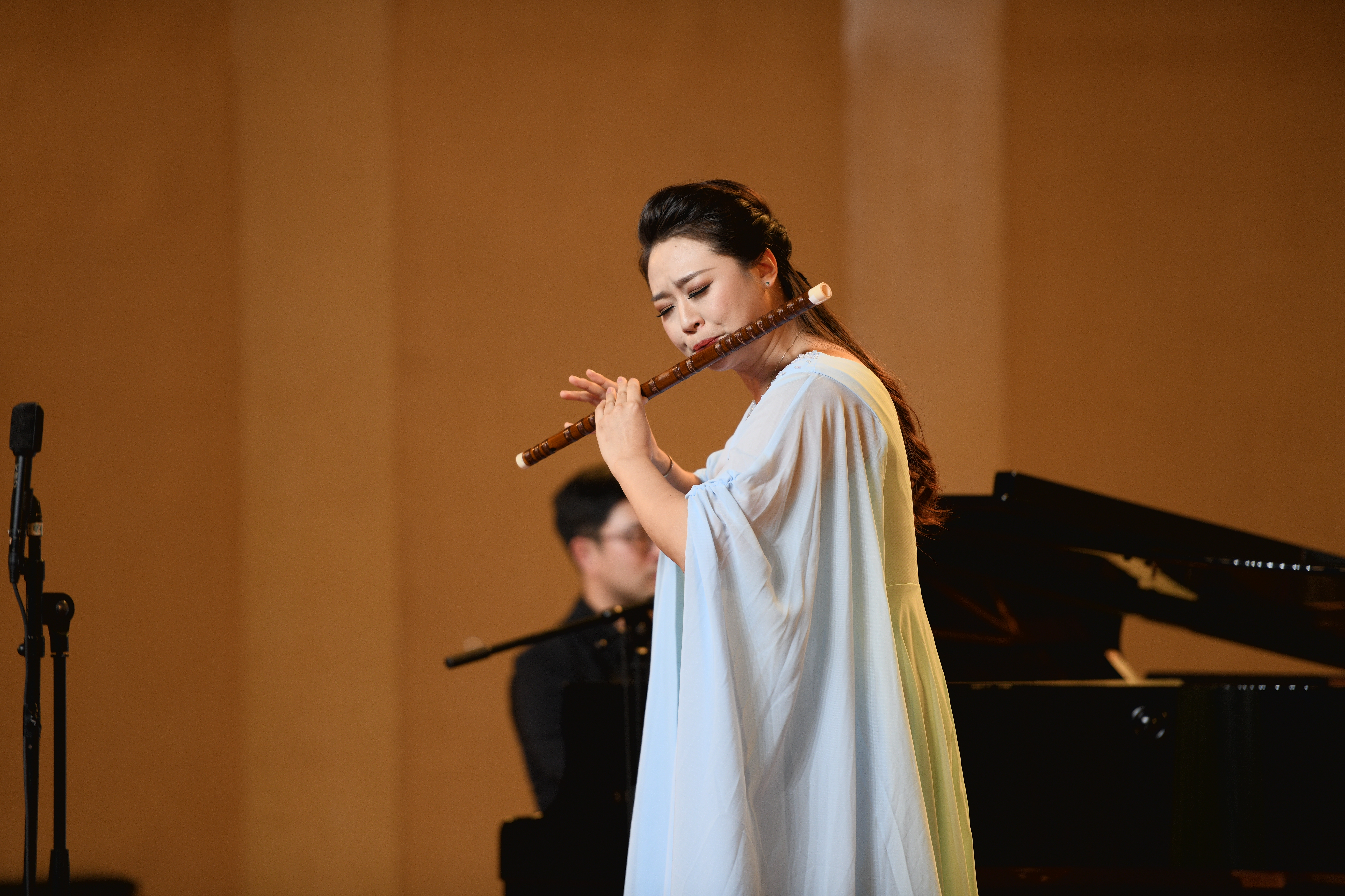 用笛子来演奏家喻户晓的陕北民歌《兰花花》会是种怎样的体验?浙艺2009级优秀校友、中国音协排箫艺术研究会理事、赵松庭笛子艺术研究会理事杨梦璐给出了答案。笛曲《兰花花》根据陕北民歌《兰花花》和关铭创作的二胡叙事曲《兰花花》而改编, 作品注重笛子“吹情”的艺术手法,展现了中国音乐特有的注重神韵的魅力特质。杨梦璐以女性特有的细腻情感饱含深情地演奏了该曲,时而幽怨,时而欢愉,用精湛的演奏技艺征服了现场观众。