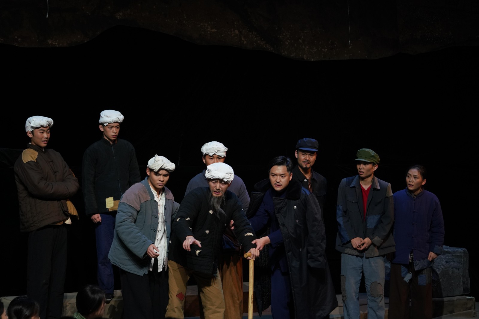 所谓沉浸式话剧,它打破了传统剧场固定的舞台和观众席位,从物理空间上打破了“第四堵墙”,随着现代戏剧不断对演员与观众交互性边界的试探和推动,“看戏”逐渐成了“体验戏剧”,这种戏剧从时间与空间上把人吸入其中,创造出类似真实世界的环境。陕北的信天游在黑匣子里唱响,故事就在这高亢嘹亮的歌声中缓缓拉开序幕,观众也仿佛置身于黄土地,感受那代人生活的起伏跌宕。这是对黄土地上艰辛生活的写照,也展现着苦难碾压下倔强生长的爱情和理想。