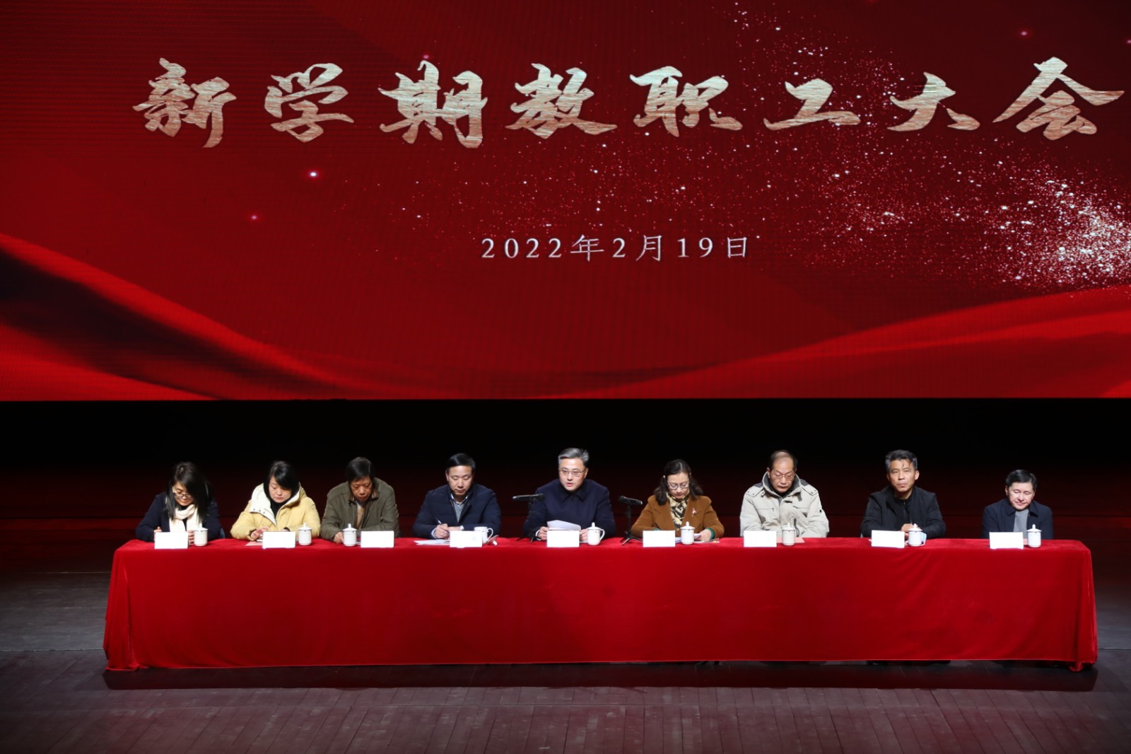 2月19日,浙江艺术职业学院新学期全体教职工大会在浙江实验艺术剧场举行。校党委领导班子成员薛亮、黄杭娟、夏开堂、章轲、徐芳、沈军甫、支涛、马向东、刘杨出席,全体教职员工参加。院长、党委副书记黄杭娟主持大会。