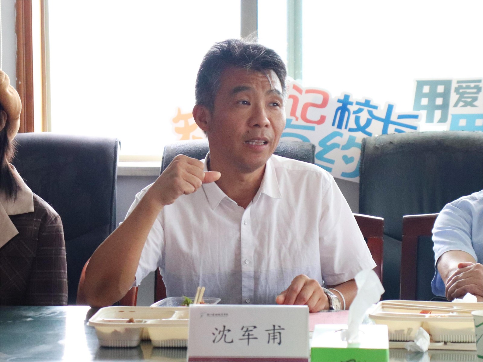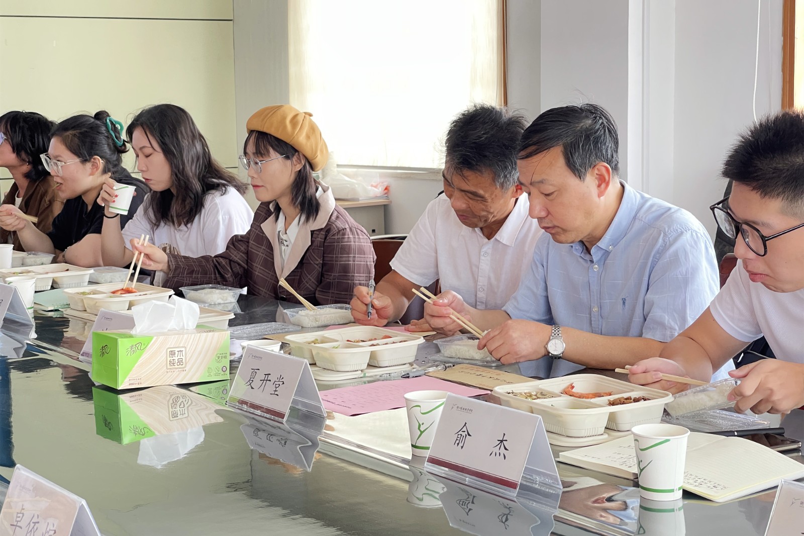 午餐会上,书记校长和师生代表们边吃边聊,围绕校园建设、校区环境、学习生活等话题展开交流探讨。