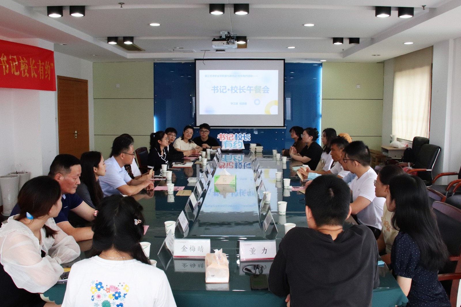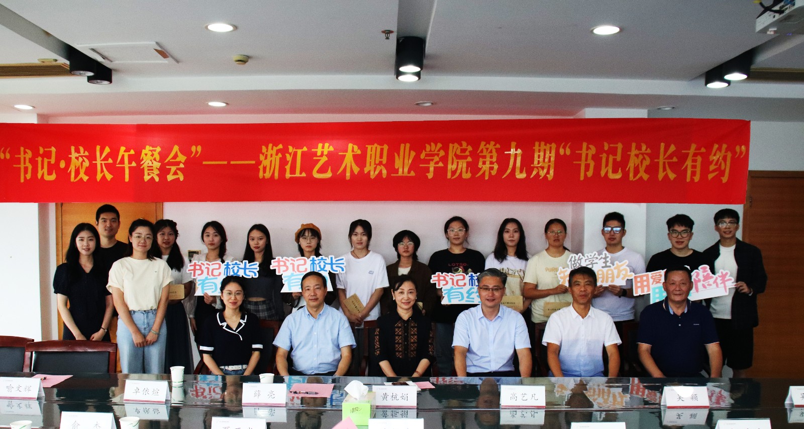 9月28日,书记校长有约活动在改造一新的浙江艺术职业学院东冠校区举行,校党委书记薛亮、院长黄杭娟、校党委副书记夏开堂、副院长沈军甫和学生代表们共进午餐,共话未来。学生处、校团委、东冠综合办等相关老师一同参加。