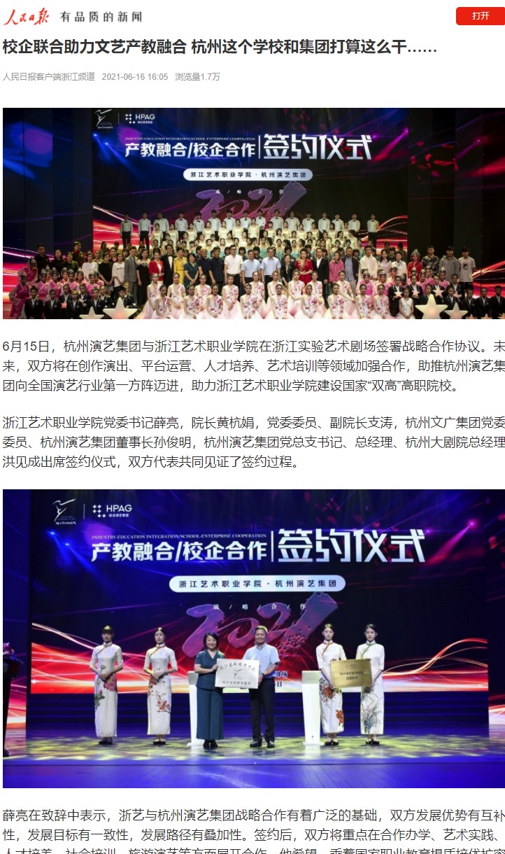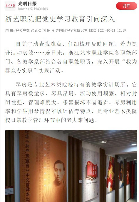 学校活动、人物报道、演出视频等在人民日报、新华社、央视新闻、光明日报、中国教育报、中国青年报、中国文化报、学习强国、浙江日报等国家级、省市级媒体平台发表百余篇,受到广泛好评。