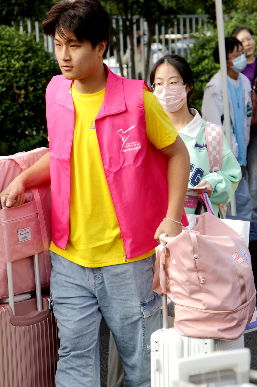 志愿者是报到现场的一道亮丽风景线,搬运行李,指引道路,扫码测温,为新生拍照,现场唱歌营造气氛,志愿者们不仅为新生提供全方位服务,而且多才多艺,让新生们开开心心报到。行李存放处、摆渡车旁随处可见志愿者的身影,志愿者的给力让报到工作有条不紊地进行。