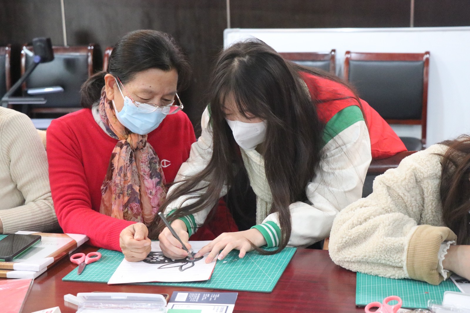 ▲浙艺师生走进东信社区,带领居民体验端午香包、创意扎染、创意扇面、剪纸等非遗技艺