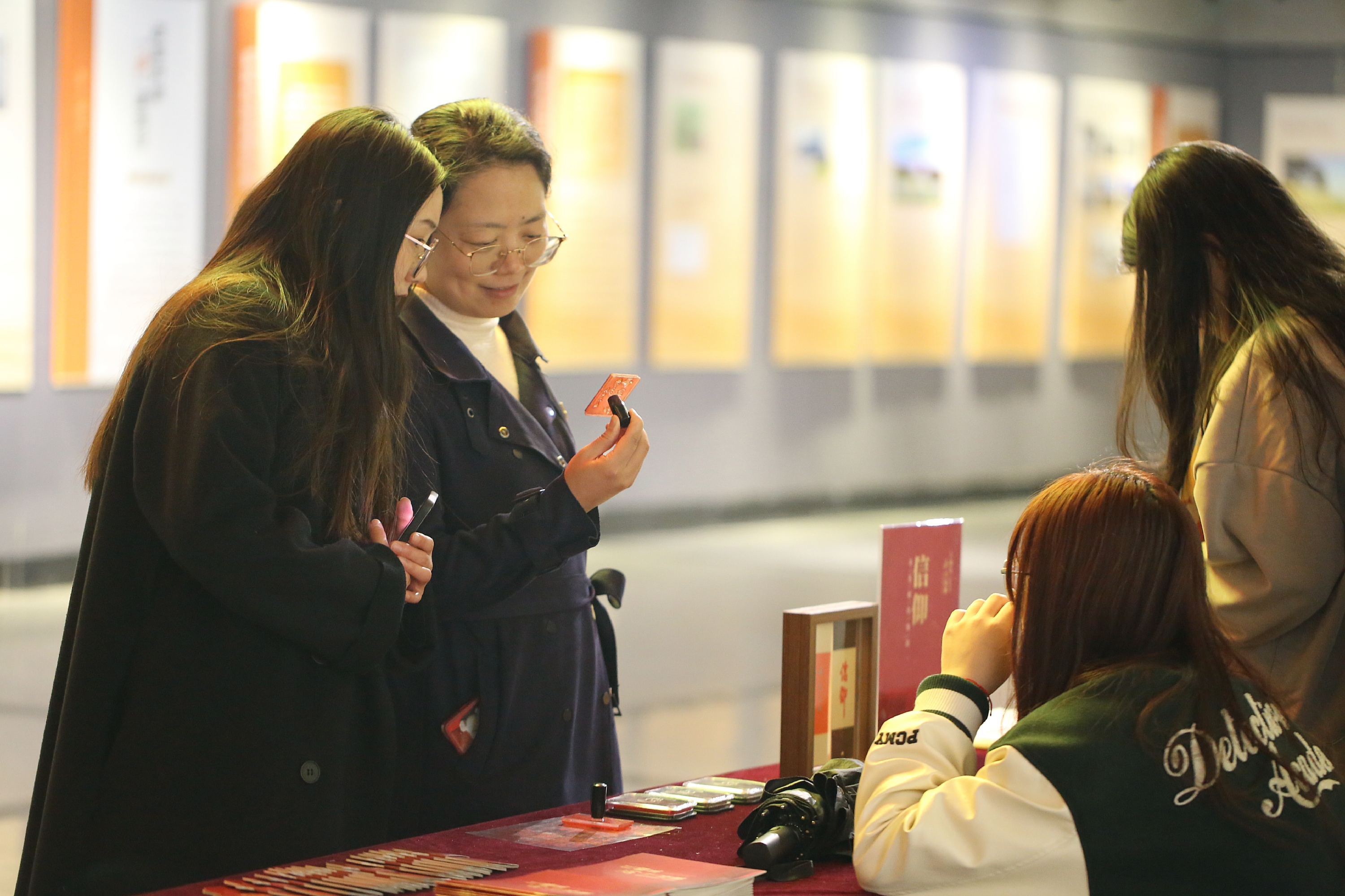 展览中还开设了红色文创专区,以供广大师生创作印章、书签,拓印版画等,通过艺术创作,凝聚起永远跟党走、奋进新征程的豪情壮志。
