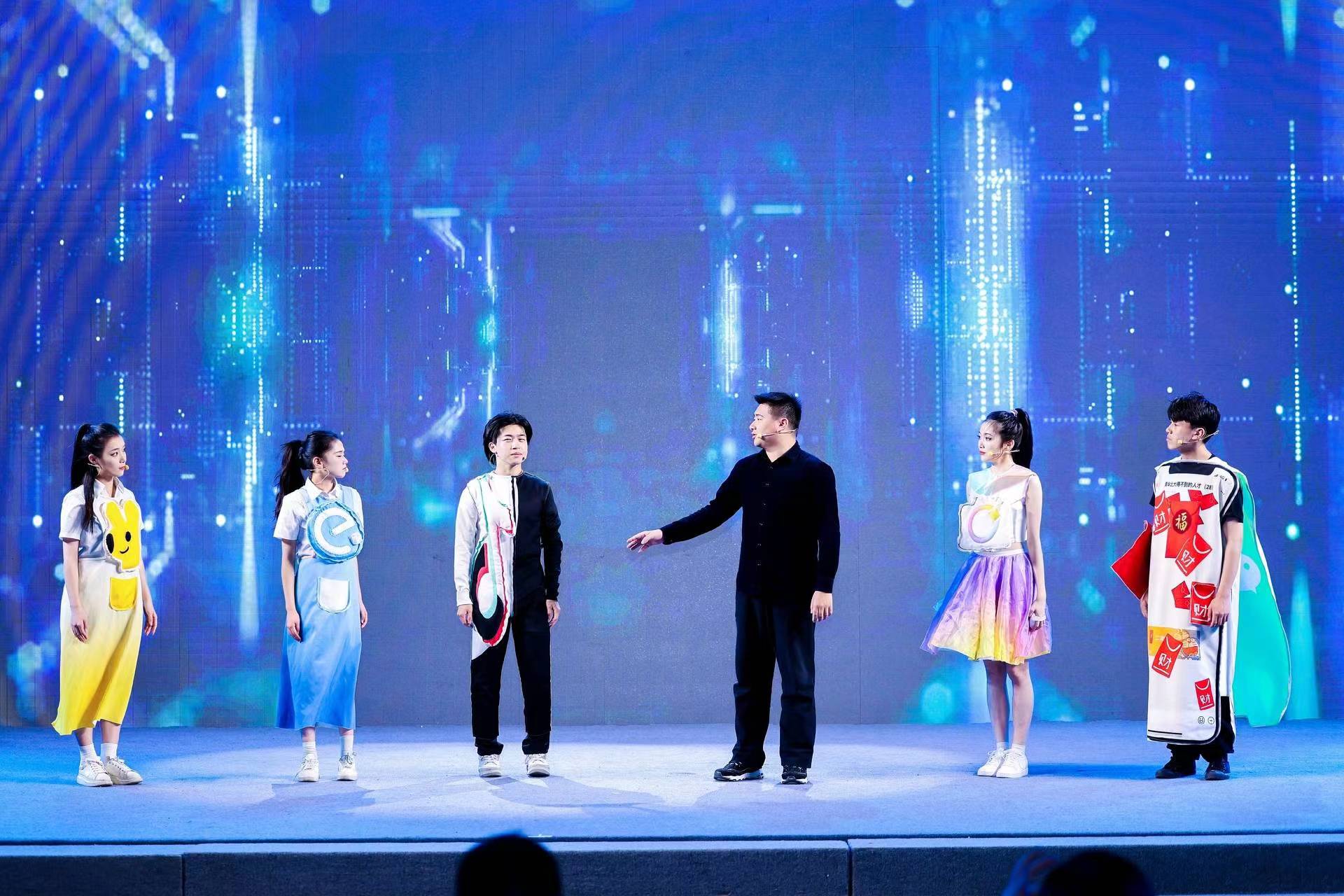 根据主办方主题要求,承担整场演出的演教学院表演艺术专业教学团队积极策划、组织、创排了这台“订单式”的演出节目,通过演出展现表演艺术专业学子“一专多能”的艺术才能。晚会在歌舞表演《龍》中拉开序幕,《龍》将舞蹈、声乐和鼓融为一体,旋律动感,配合默契、整齐划一。2019级表演艺术五年一贯班全体学生一开场就将全场气氛带入高潮。舞蹈、朗诵、歌曲次第登场,原创相声《智能时代》、原创小品《共同富裕山花村》、原创快板《共庆二十大 活力迎亚运》等原创作品让观众印象深刻,现场气氛热烈,掌声不断。
