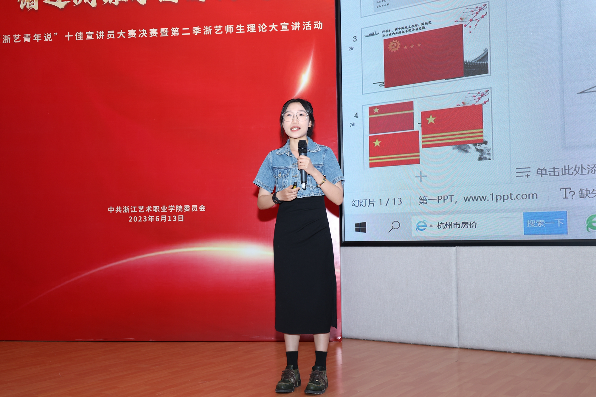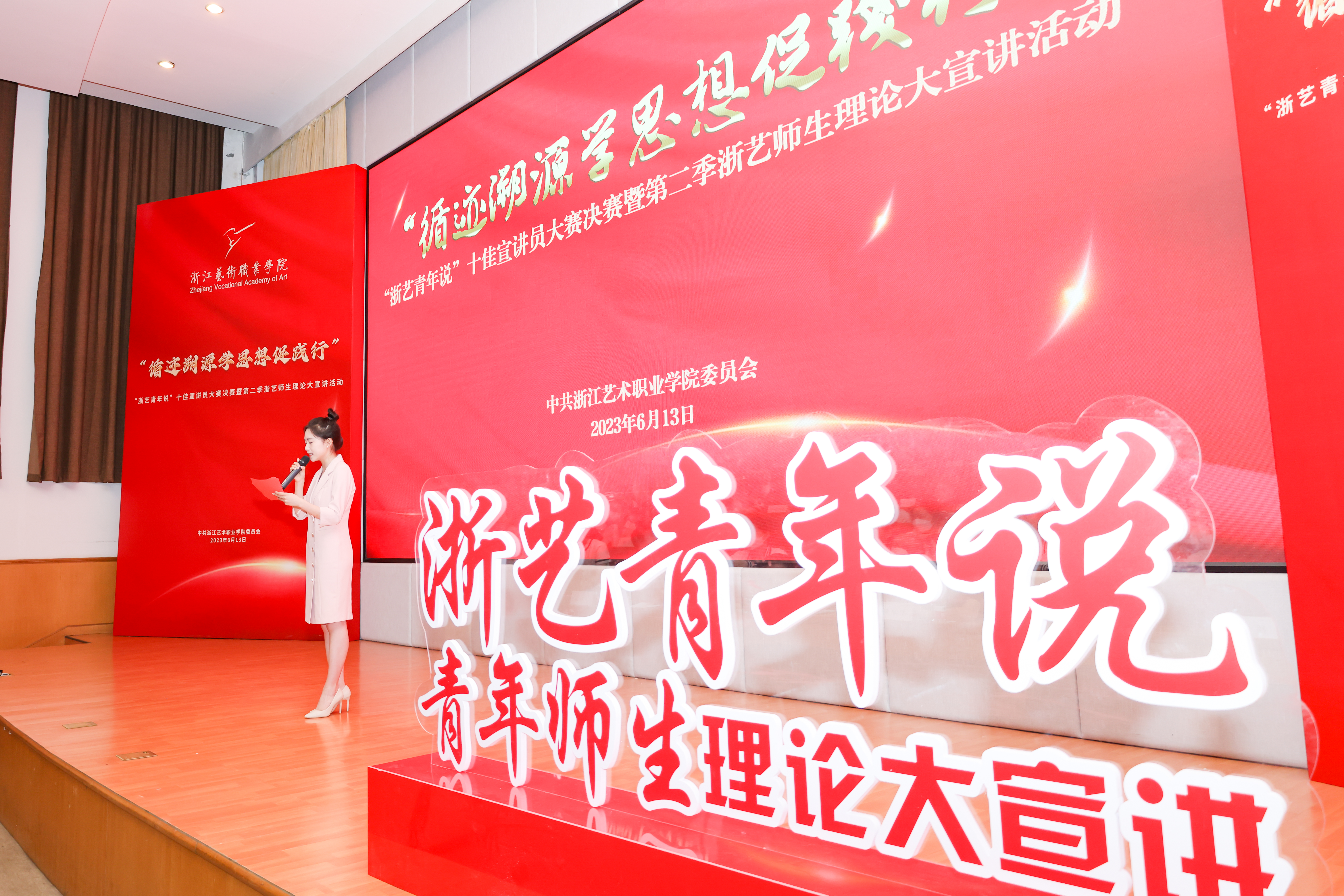 本次宣讲员比赛活动是浙江艺术职业学院学习贯彻习近平新时代中国特色社会主义思想主题教育的一项重要活动,通过青年师生主题宣讲,引导全校师生深入学习贯彻习近平新时代中国特色社会主义思想和党的二十大精神,从中汲取进取的智慧和力量,自觉接受思想淬炼和精神洗礼,在不断强化理论武装的过程中筑牢信仰之基,补足精神之钙,把稳思想之舵。