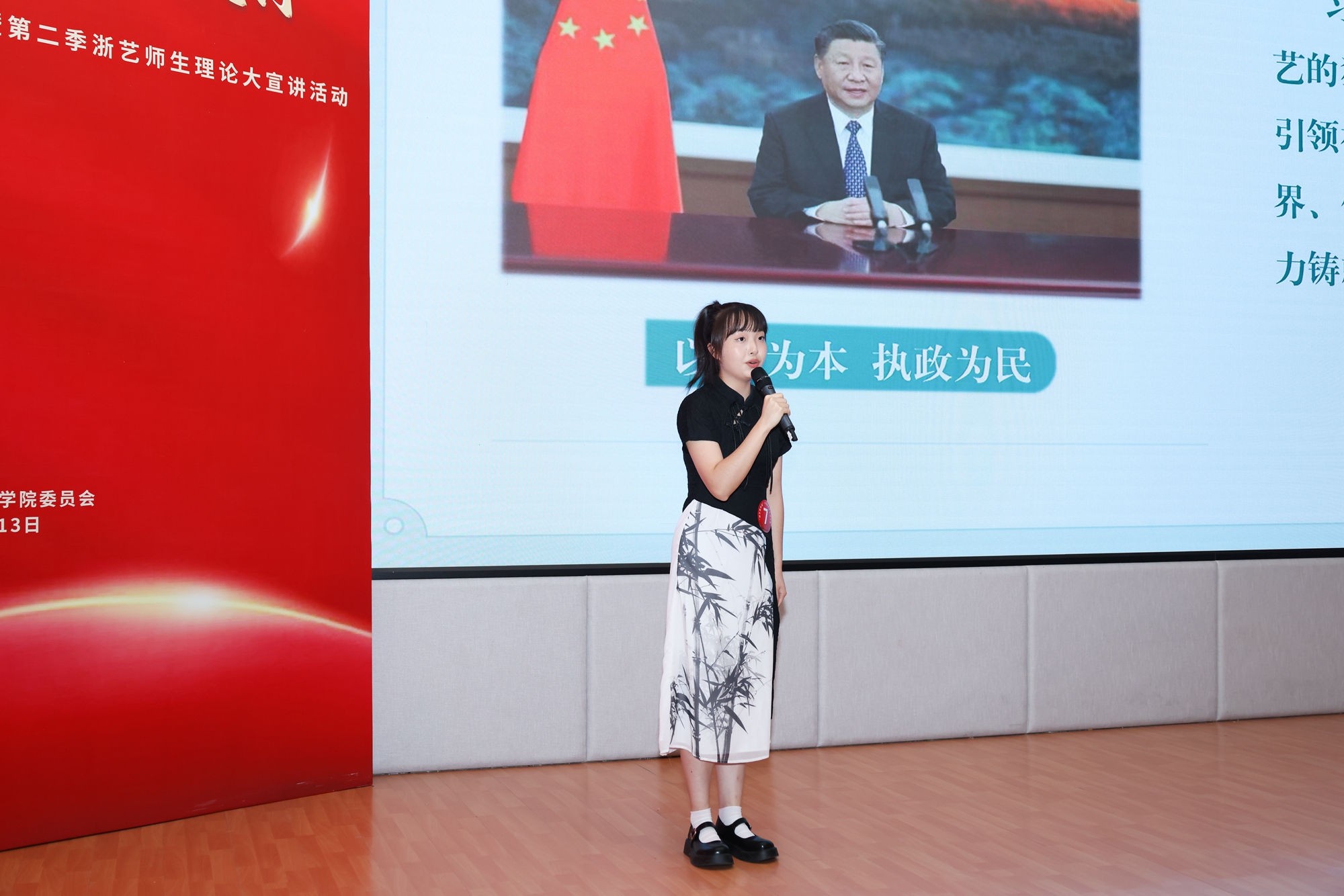自2022年以来,“浙艺青年说”青年师生理论宣讲团围绕学习贯彻习近平新时代中国特色社会主义思想和党的二十大精神,在校内外广泛开展理论宣讲活动。接下来,“浙艺青年说”师生宣讲员将深入师生、深入基层、深入社会开展宣讲,通过丰富多彩、形式多样的宣讲讲好中国故事、讲好浙艺故事,让党的创新理论飞入寻常百姓家。