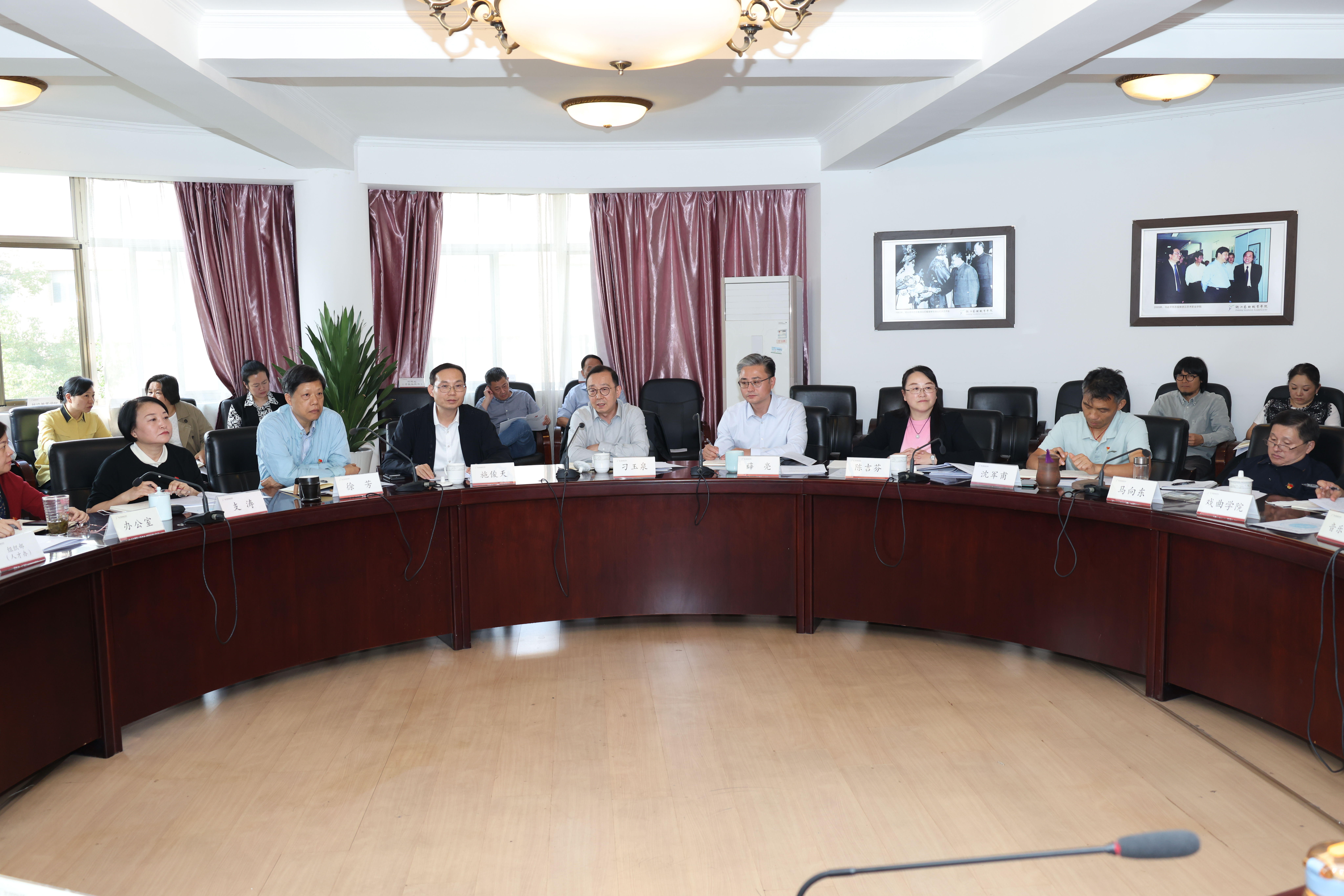 会议强调,要全员覆盖、大力营造学习宣传贯彻习近平总书记考察浙江重要讲话精神的浓郁氛围,以习近平总书记考察浙江重要讲话精神为指引推进学校新一轮高质量发展。要对标对表习近平总书记赋予浙江的新期待新定位,紧紧围绕科技创新、共同富裕、改革开放、中华民族现代文明、党的建设等时代命题、关键问题和重大课题,找准新赛道、树立新目标、打造新优势,科学设置学校高质量发展指标,以立德树人为根本任务,以提升关键办学能力为核心内容,以深化产教融合为攻坚重点,以改善办学条件为重要保障,努力建设全国一流高水平艺术职业院校。