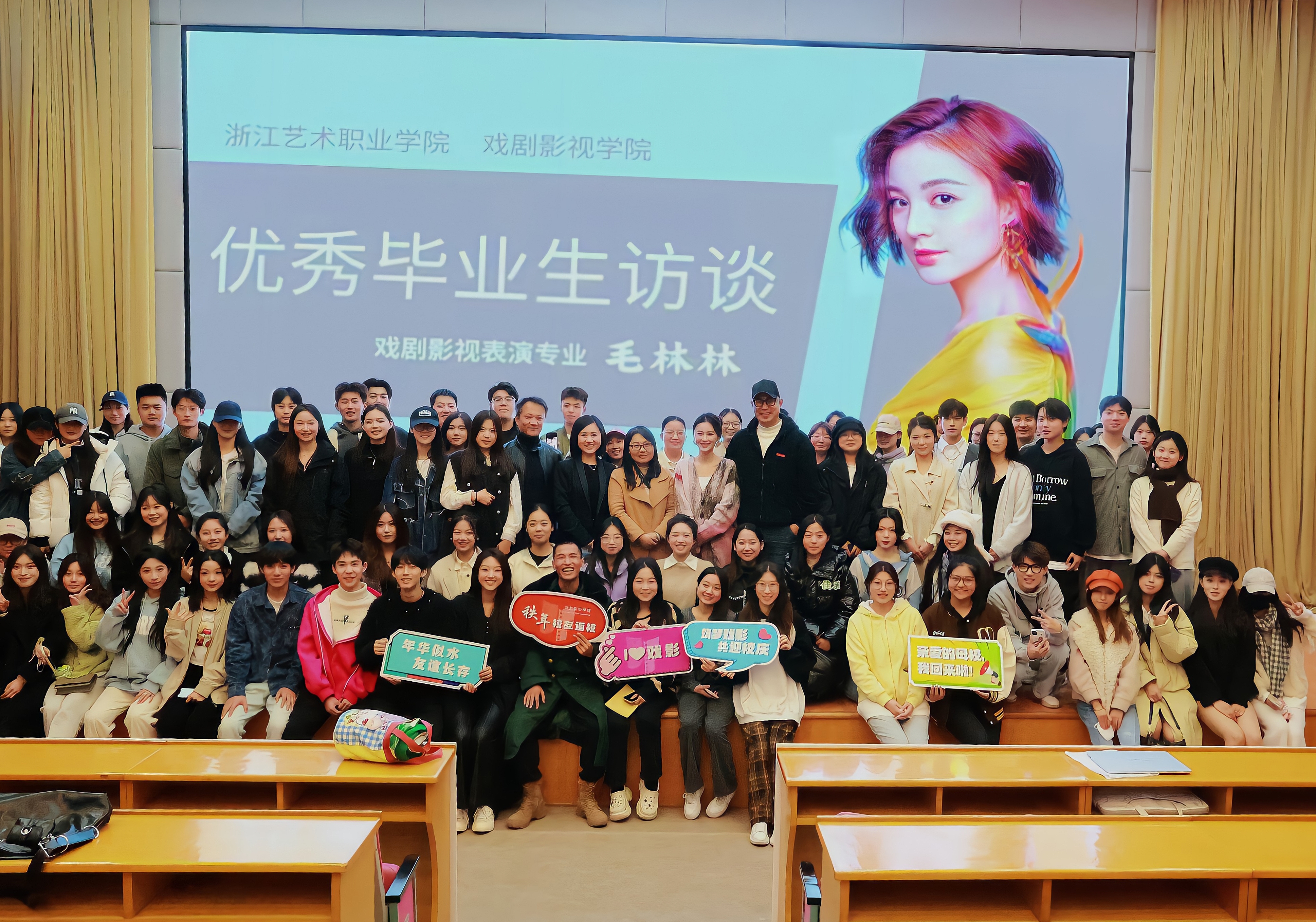 从机缘巧合下来到浙江艺术职业学院,学习表演、进入表演行业,一路走来,毛林林始终怀有热忱,追光而行。她说,当年专业老师鞭策她表演的画面还在她的脑海中不断浮现,在浙艺,她夯实了专业基础,收获了友谊与师生情。时至今日,她仍然在不断尝试,挑战不同的角色,努力演绎好每个角色,呈现出更好的作品。