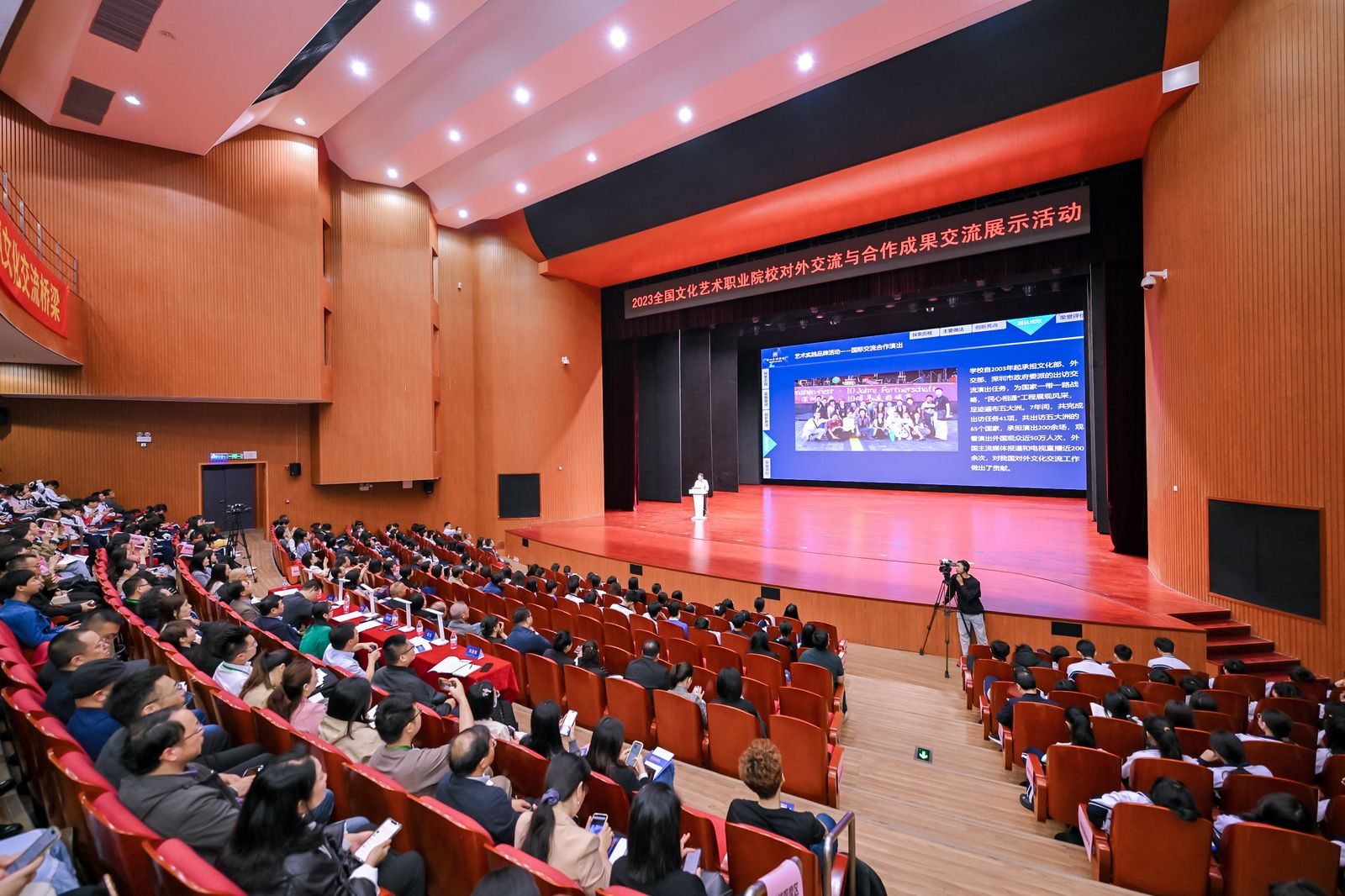 11月13-15日,2023年全国文化艺术职业院校对外交流与合作成果交流展示活动在深圳艺术学校举行。此次活动由文化和旅游部科技教育司指导,全国文化艺术行指委、深圳市文化广电旅游体育局主办,全国文化艺术行指委对外交流与合作专委会、教学质量评价与保障专委会、深圳艺术学校、浙江艺术职业学院联合承办。文化和旅游部科技教育司司长陶诚、副司长刘冬妍,广东省文化和旅游厅、新疆维吾尔族自治区文化和旅游厅、深圳市文化广电体育局的相关领导,中国艺术职业教育学会、全国文化艺术行指委的领导和代表,全国文化艺术职业院校的师生代表,以及来自16个国家和地区的中外嘉宾出席活动。