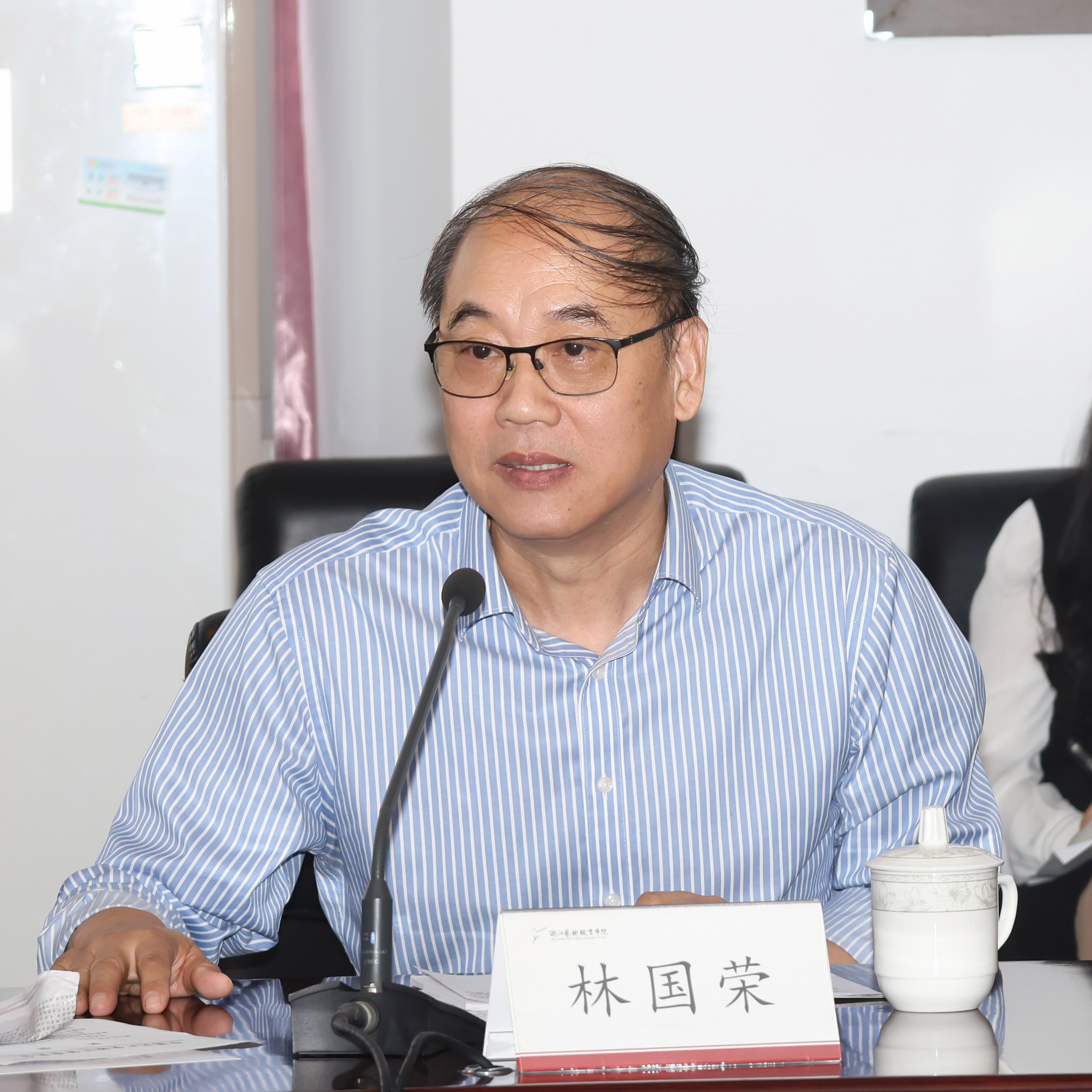 林国荣讲述了习近平同志视察浙江艺术职业学院时的美好往事,回顾了学校近70年来的创业历程,阐述了自己对习近平同志致浙江艺术职业学院建校50周年校庆贺信精神的学习体会。他感念习近平同志对浙艺办学历史、办学成果的充分肯定,激励鞭策全校师生站在新的起点上办人民满意的艺术教育。他提出,学校师生要牢记习近平同志对浙艺的谆谆教诲,把“突出办学特色,提高教育质量”作为立校之本,贯穿教育教学全过程;要深刻领悟习近平同志对浙艺的殷切希望,在“抓住机遇,加快发展”上奋发有为、再创佳绩;要把学习贯彻习近平同志致浙江艺术职业学院建校50周年校庆贺信精神与学习贯彻习近平新时代中国特色社会主义思想特别是习近平文化思想紧密结合起来,主动融入文化大发展大繁荣的历史进程,主动对接文化和旅游深度融合的大趋势,主动学习和把握文化艺术发展的新业态新形式新样貌,在提升办学水平和艺术教育质量上再创浙艺新辉煌。