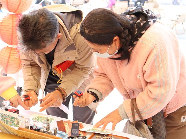 参加此次市集活动的师生结合课堂教学,精心打磨设计作品,将一件件充满艺术创造力和生命力的手工艺教学成果展示出来,让非遗传统技艺在文创产品中焕发新的生机。