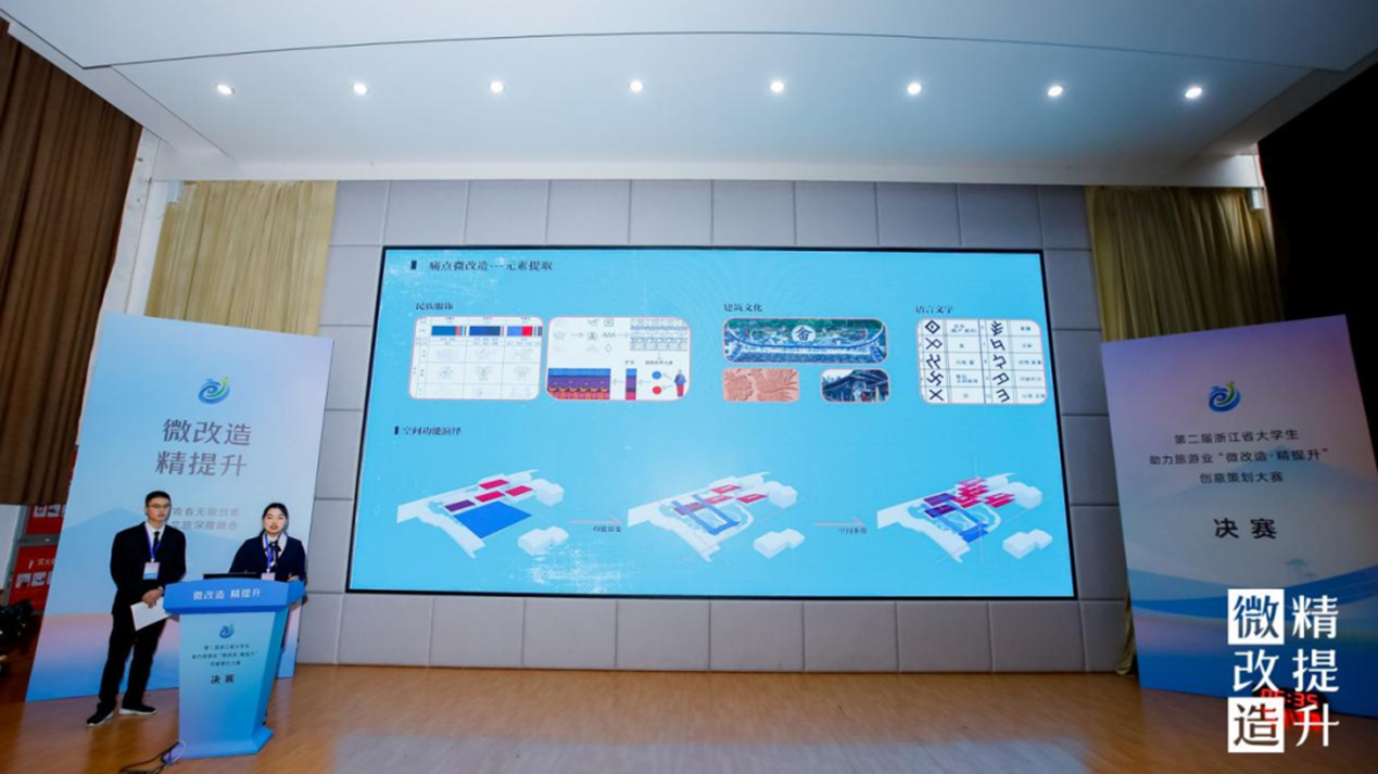 作为浙江省大学生助力旅游业“微改造 精提升”创意设计大赛的承办单位,我校探索以赛事办实事,以项目任务驱动教学,使教学和社会需求进一步接轨,提升办学质量,共同推动旅游业高质量发展,奏响美美与共的乡村乐曲,绘就共同富裕的美好画卷。