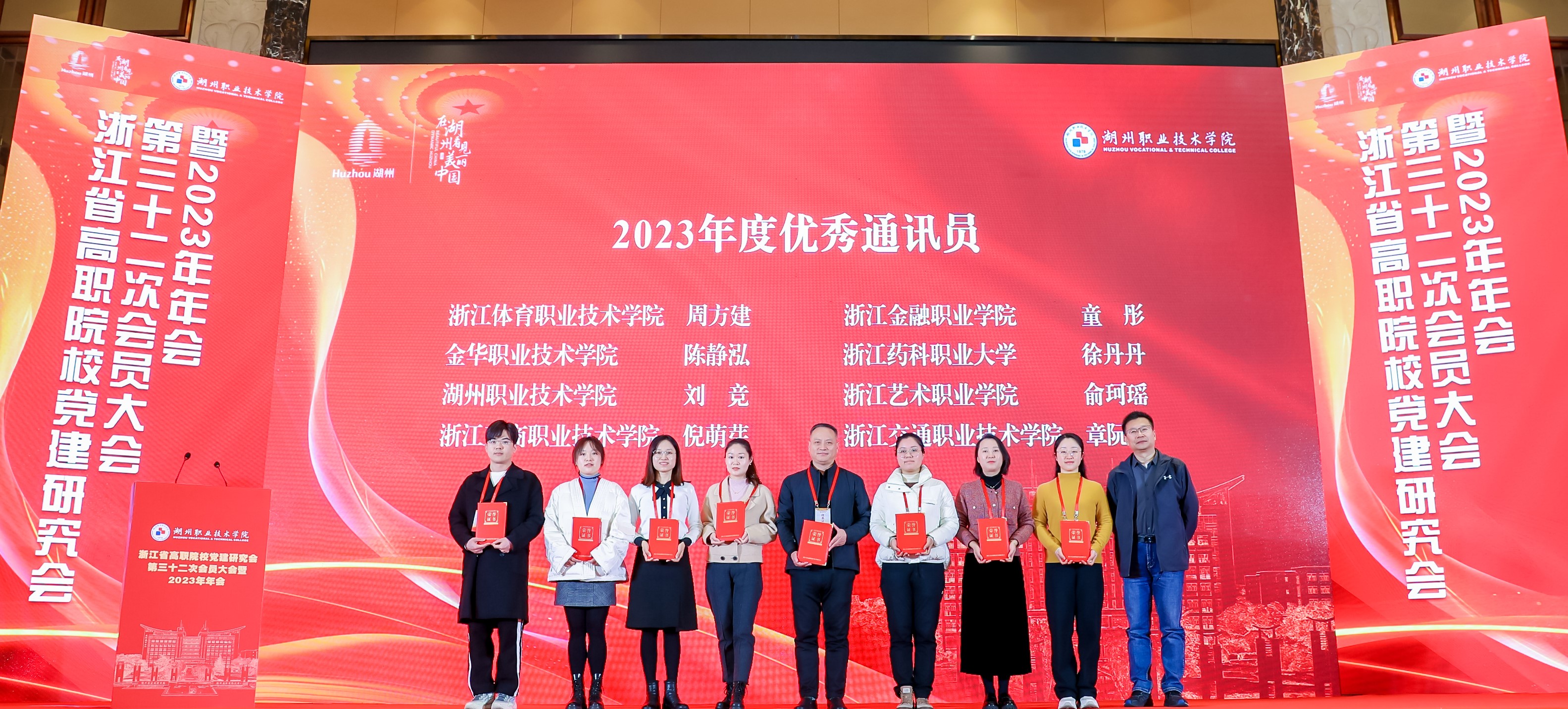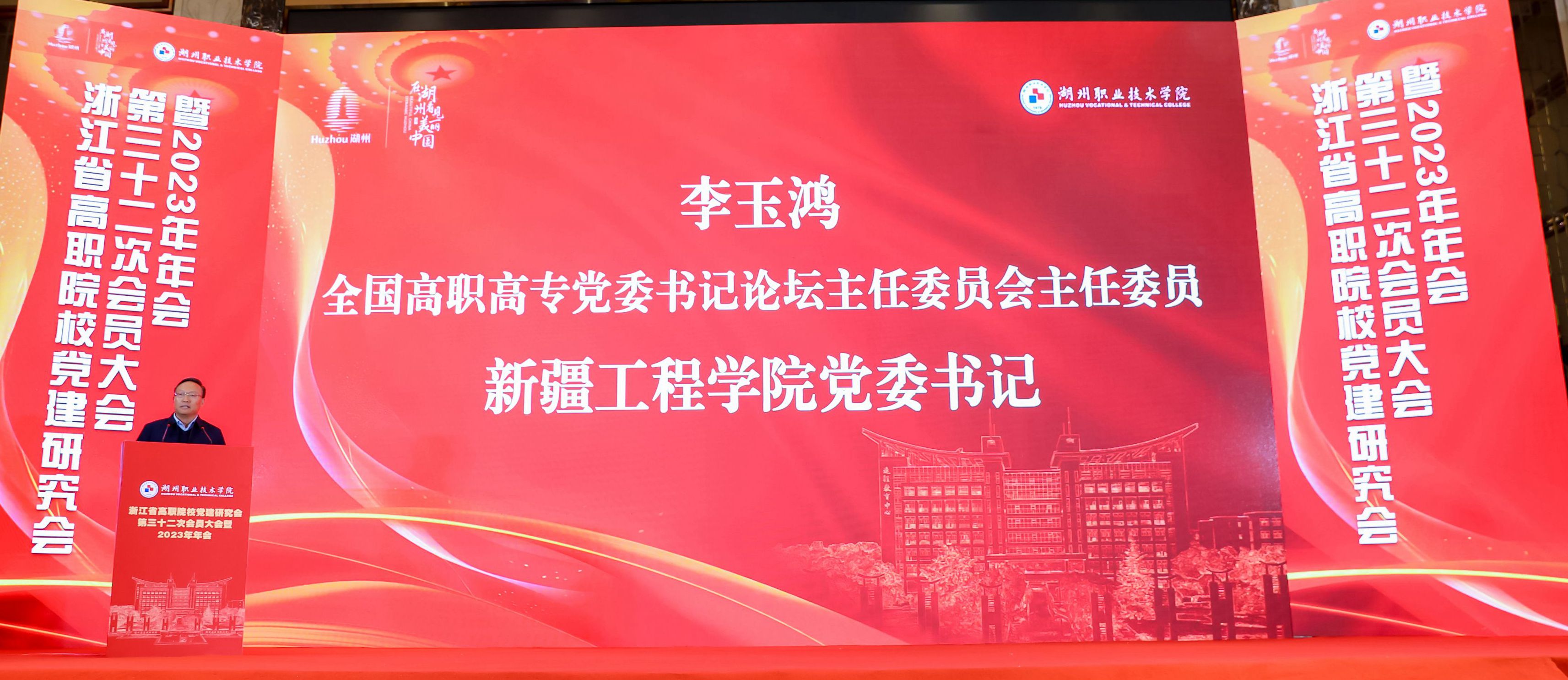 11月30日至12月2日,浙江省高职党建研究会第三十二次会员代表大会暨2023年年会在湖州举行。本次年会以“学习贯彻习近平新时代中国特色社会主义思想,推动高职教育高质量发展”为主题,中国高等教育学会第六届理事会会长瞿振元,湖州市委常委、副市长阮叶萍,省教育厅组织处处长陈钦林,全国高职高专党委书记论坛主任委员会主任委员、新疆工程学院党委书记李玉鸿,教育部职业教育发展中心研究员赵伟,中国教育学会教育新闻分会常务副主任委员汪大勇,中国教育在线副总裁赵欣,省高职院校党建研究会会长、浙江金融职业学院原党委书记周建松,来自北京、新疆、贵州和省内各高职院校党委书记、党委副书记、组织部部长、宣传部部长、思政教育工作者等200余名代表参加会议。研究会常务理事、我校党委副书记夏开堂,研究会理事、校党委委员、宣传部部长、统战部部长马向东和我校获奖代表参会。