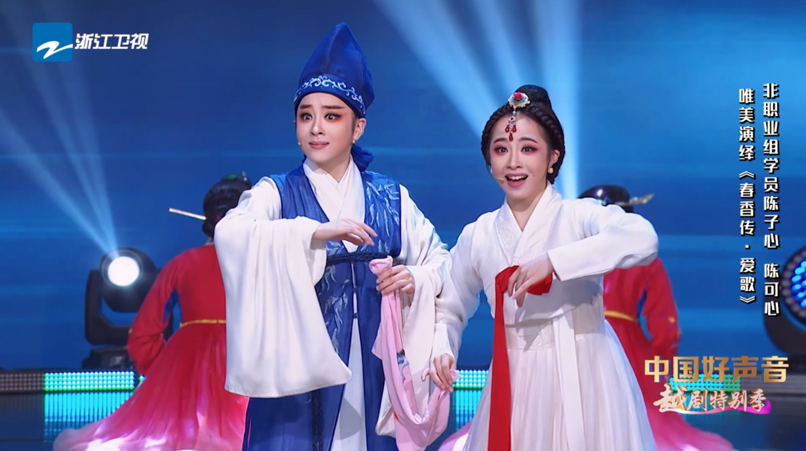 2022年,姐妹俩参加浙江卫视《中国好声音》越剧特别季,凭借刚柔并济的唱腔、俊逸潇洒的表演,以一段精彩的《春香传·爱歌》引得茅威涛、方亚芬、陶慧敏、郑云龙等4位导师相继转身,并在方亚芬战队最终获得“越韵之星”称号。节目播出四期直播累计观看人次达6400万,全网短视频播放量达1.1亿,微博话题阅读量累积超2.4亿,全网热搜42个。浙艺的越剧孪生姊妹花也被越来越多的社会大众所熟知、喜爱,圈粉无数。