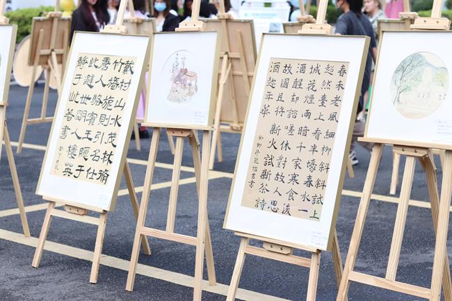 活动现场人头攒动,一个个摊位上的文创产品琳琅满目。中国传统书画跃身于灯笼、香薰蜡烛、书签、纸伞、纸扇、挂件之上,与创意产品完美结合,精致美观又充满文化气息,引得现场观众频频驻足,争相购买。大家在一件件扇面和书签中体悟融入生活中的艺术,从火漆印章和香薰蜡烛中感受传统文化的新魅力。值得一提的是,师生们还为戴村镇大石盖村开发了系列文创产品,也受到一致好评。