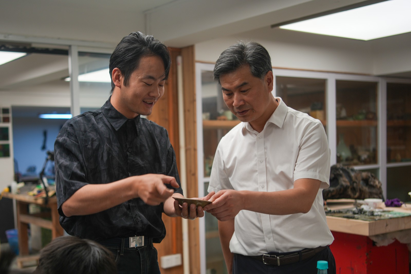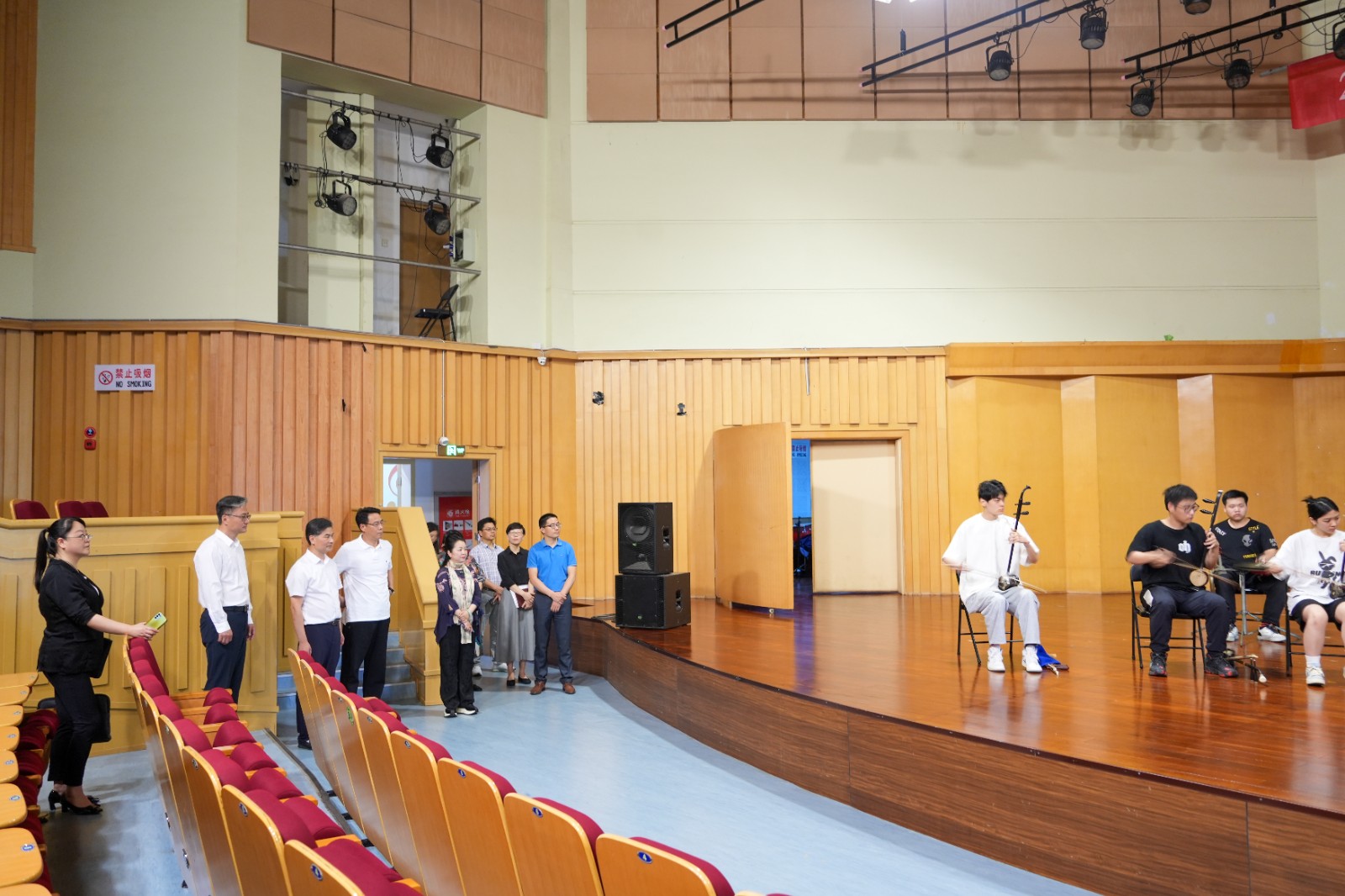 吕伟刚一行参观了戏曲学院、音乐学院、舞蹈学院、手工艺学院、浙江艺术学校(附中)、周正平舞台美术导师工作室等教学实践场所,走进课堂,同师生交流,并与我校党委班子成员进行座谈交流。