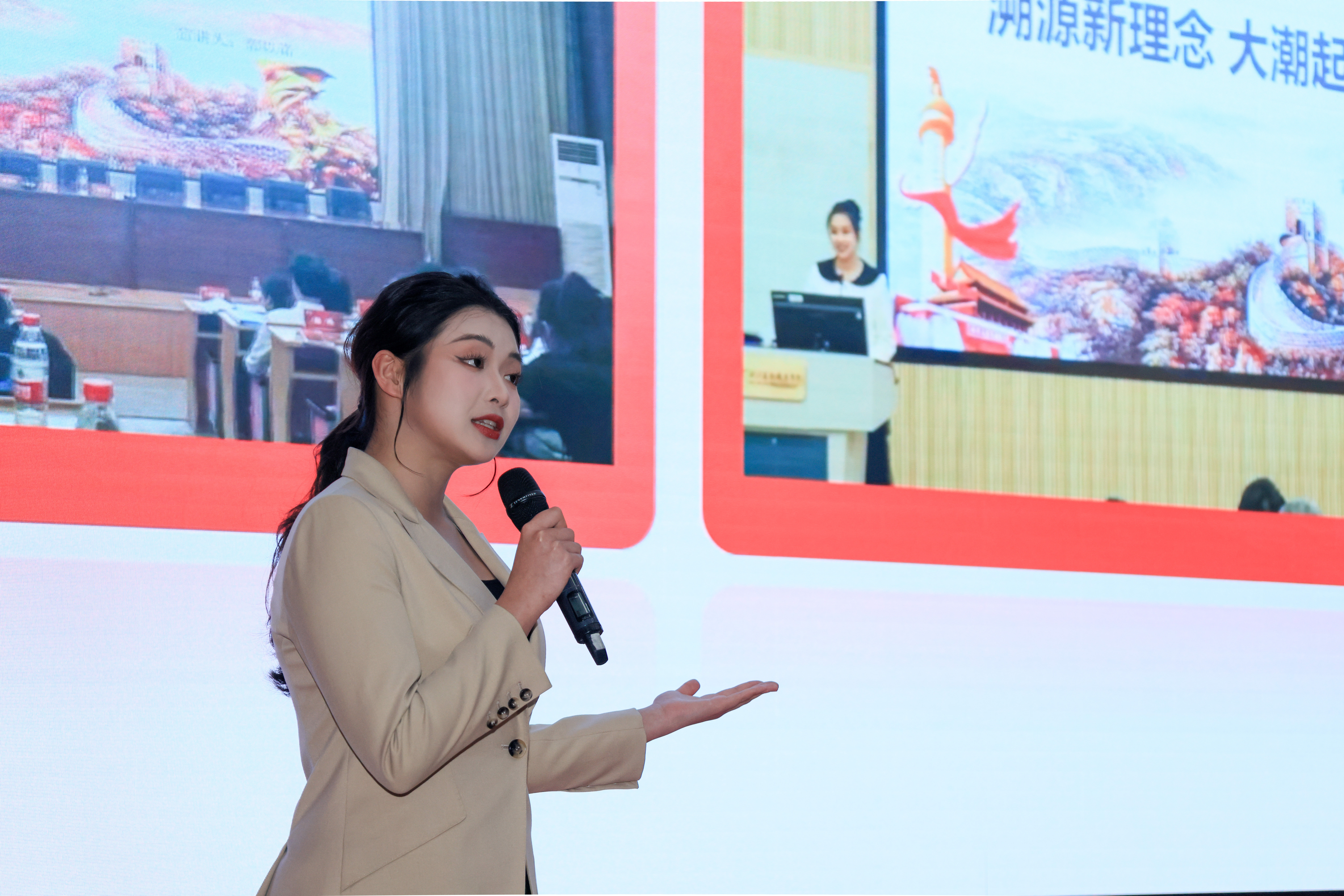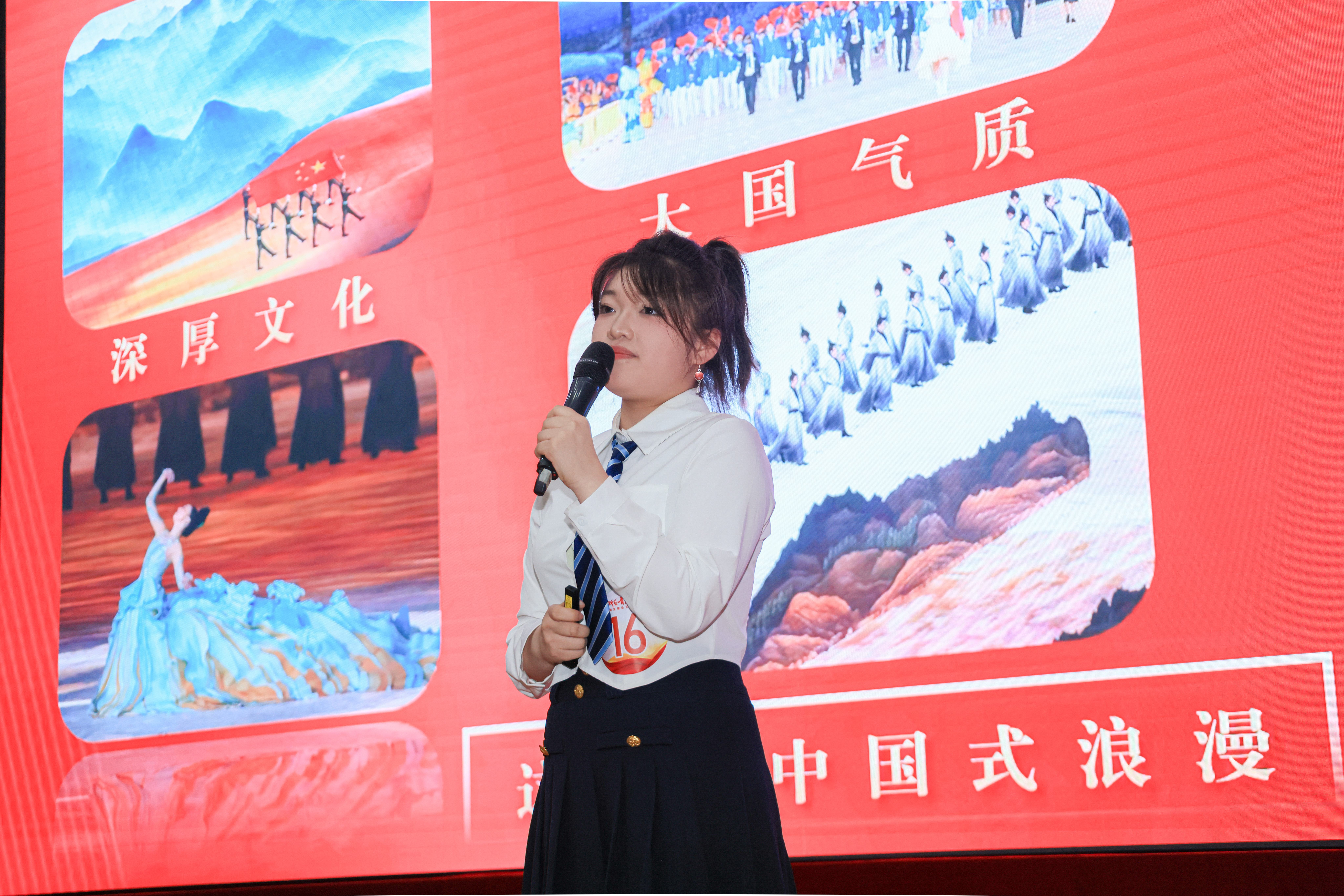 演艺与教育学院郭以诺以自身参加三季理论大宣讲的感悟入手,宣讲青春乐章,强调凝聚力量、传递文化,呼吁青年为时代发声,助力国家发展;设计学院方园以浙江文化为切入点,生动形象地介绍了浙江丰富的文化遗产、文旅融合实践及大学生在乡村振兴中的贡献,讲述“何以是浙江?”;演艺与教育学院朱含蕾讲述浙艺学子接力基层文化工作的故事,决心用所学助力家乡文化建设,传承基层精神,让文化更加繁荣;戏曲学院缪斯通过分享戏曲学院校友故事,讲述坚守初心与创新精神,传承中华戏曲文化。