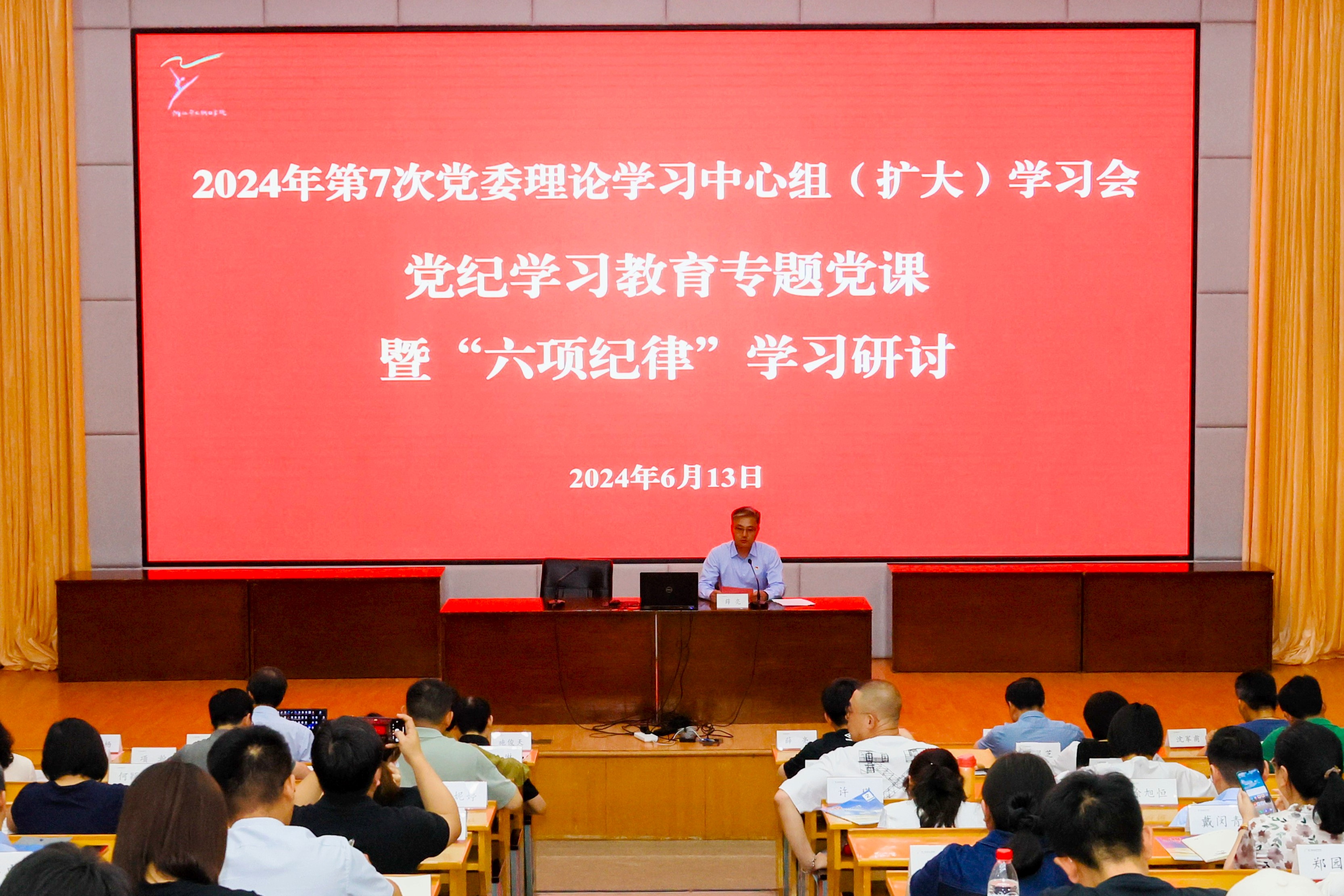 4月15日,学校党委举行理论学习中心组(扩大)学习会暨党纪学习教育动员部署,传达学习习近平总书记关于党纪学习教育的重要讲话和重要指示精神,认真贯彻落实中央和省委以及省委教育工委、省文化广电和旅游厅党组有关部署要求,全面动员部署学校党纪学习教育工作。校党委书记薛亮主持会议并作动员讲话,校党委委员、纪委书记沈军甫作《中国共产党纪律处分条例》专题导读。