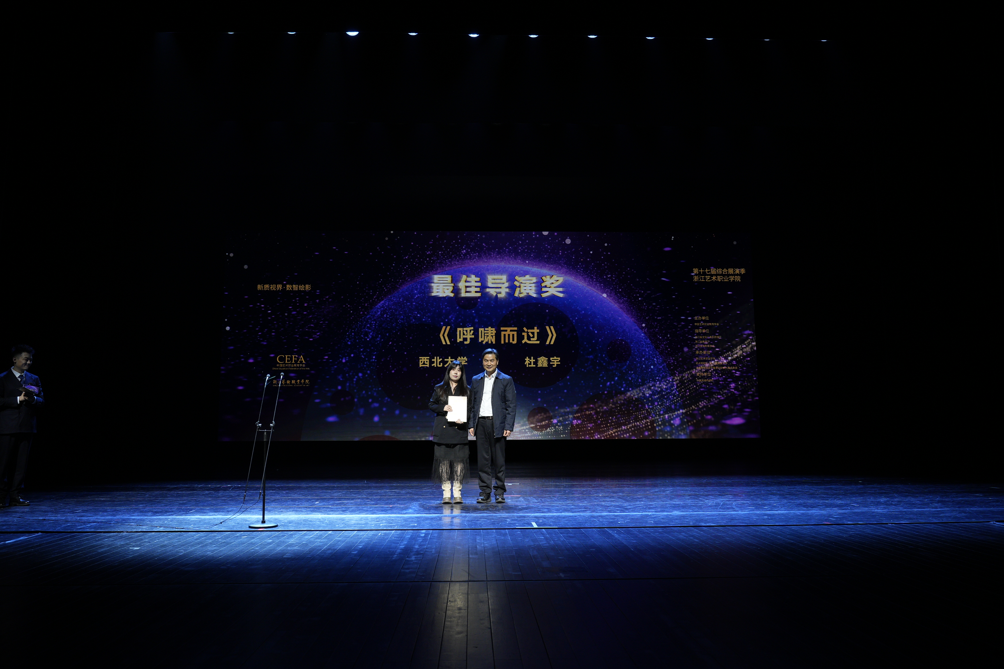 浙江省文化广电和旅游厅党组成员、副厅长吕伟刚,浙江省教育厅二级巡视员李建章,杭州市高新区党工委委员、滨江区委常委、宣传部部长翟慧清,高新区(滨江)纪委副书记、监委副主任侯百曙,高新区(滨江)宣传部常务副部长、新闻出版局局长、社科联主席、文联主席胡嘉欢,滨江区文化创业发展中心主任龚栩,高新区(滨江)社科联副主席、文联副主席程远娟,高新区(滨江)区白马湖生态创意城管委会党工委副书记、副主任王军,中央戏剧学院教授、博士生导师路海波,网易(杭州)网络有限公司党委书记、副总裁刘杰,浙江艺术职业学院党委书记薛亮、校长施俊天等出席闭幕式。