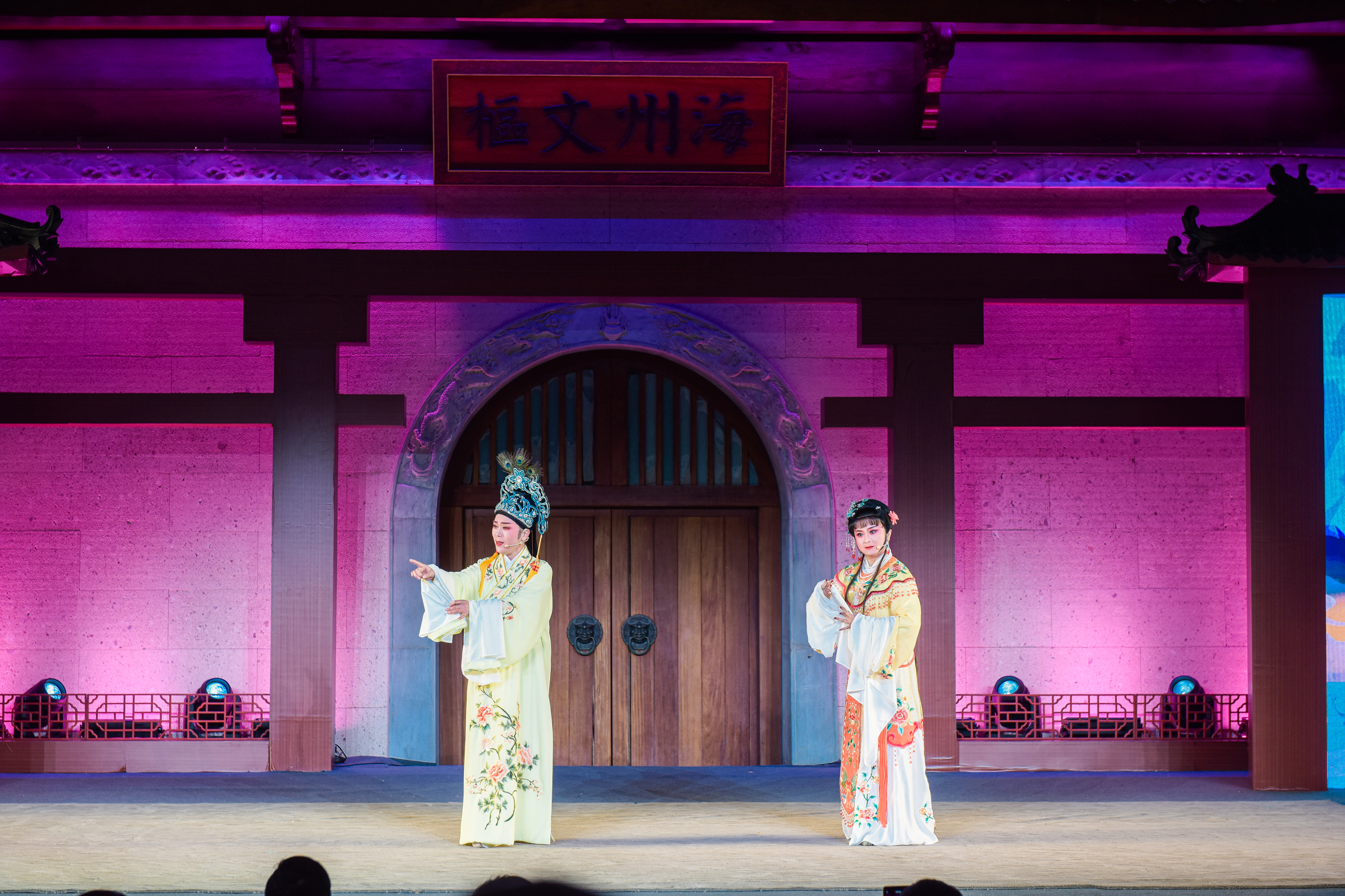 会演于22日至24日每晚演出一场,每场8个剧目。演出现场,古韵悠悠的葭沚老街上戏曲声声交织,市民们和游客们在夜幕降临前就开始等候观看,充满了期待和兴奋。永嘉县五朵金花乱弹剧团献上了第一场的第一个节目《金宝盆·上路》,随后浙江泓影常山越剧团的《义惩顽子》,三门县小百花越剧团的《祥林嫂·问天》、永嘉县小红芳京剧团的《霸王别姬》选段、缙云县李燕美婺剧团的《清风亭》选段、杭州千岛湖睦剧团《阴阳河·担水》、永嘉县红楼越剧团的《蝴蝶梦·劈棺》、宁波市北仑区大碶鸣凤越剧团的越剧《梁祝·楼台会》等接连亮相,演出有精湛的武戏,也有感情细腻的文戏,精彩表演赢得现场老戏迷热烈鼓掌和喝彩,不少老戏迷们还不时跟着台上演员哼唱几句。