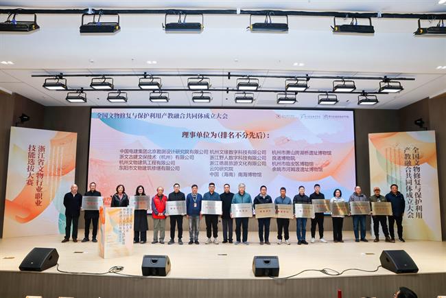 11月28日,由浙江省古建筑设计研究院有限公司、浙大城市学院和浙江艺术职业学院3家单位牵头,52家行业企业、院校、协会机构、学会组织参与建设的文物修复与保护利用产教融合共同体成立,成立大会在浙江艺术职业学院举行。