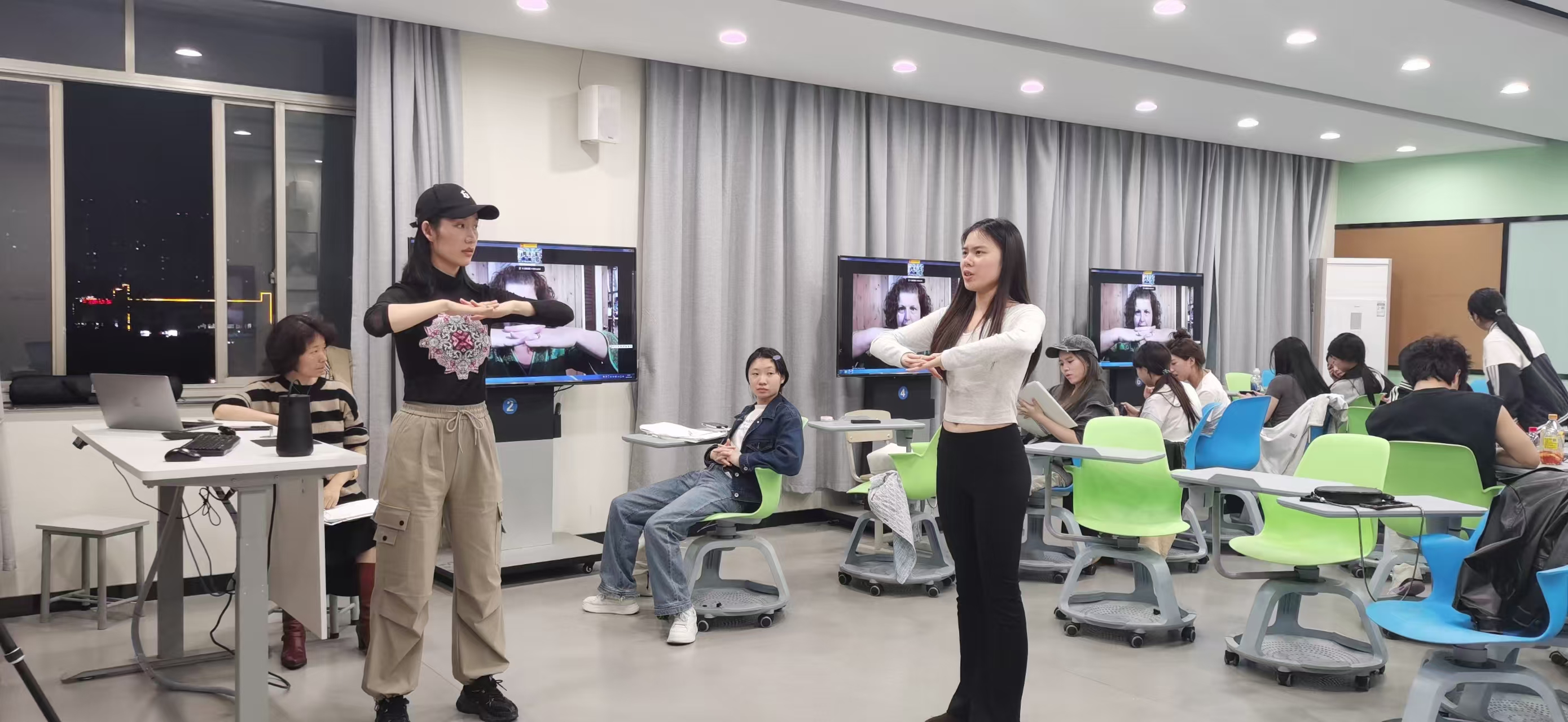 交流期间,科琳·奈斯教授分别在音乐学院合唱教室和音乐厅进行了第五次授课。她声情并茂地讲解、演示,并与现场师生积极互动,充分展现了音乐艺术的独特魅力,激发了大家对音乐更深层次的热爱和理解。科琳·奈斯教授不仅分享了最新的“Estill声音功能性训练”理念,还亲自指导学生如何在表演中融入情感,提升表现力。课堂上,师生们热情高涨,积极参与,整个氛围充满了活力。大家都被科琳·奈斯教授的专业素养和教学热情所感染,收获满满。