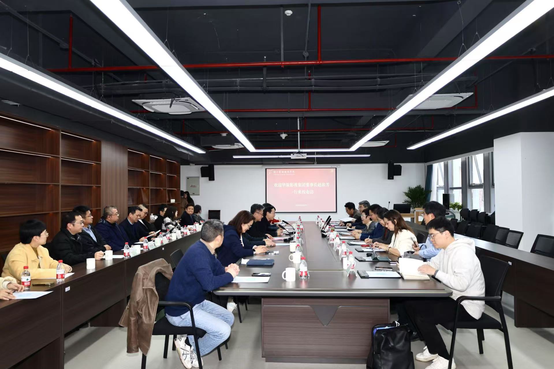 2月28日,华策影视集团董事长赵依芳一行来校走访,浙江艺术职业学院党委班子成员薛亮、施俊天、夏开堂、徐芳、刘杨、刘秀峰和相关职能部门、二级学院负责人陪同。