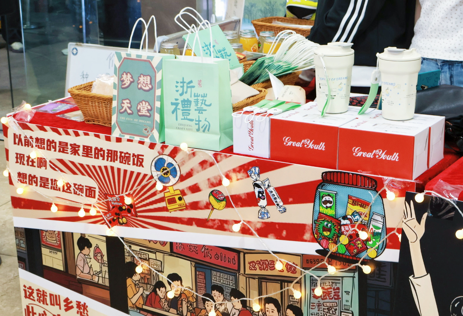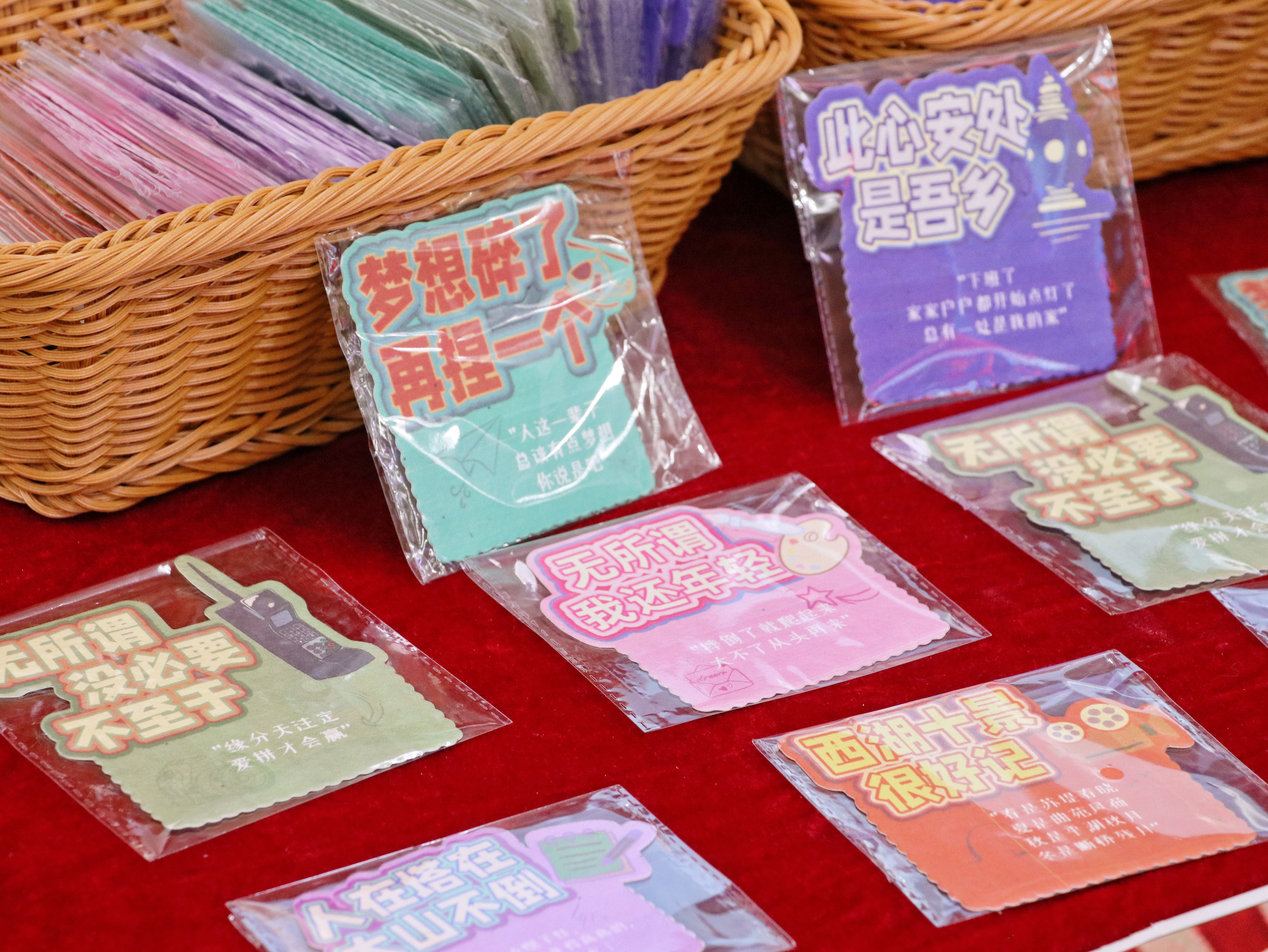 手工艺学院师生团队用文创周边产品延续舞台上的温情和感动,主题冰箱贴、台词种子纸、设计感水杯等创意文创产品吸引众多观众驻足挑选。我们希望发挥专业特长,通过文创市集+话剧表演双线并行,拉近观众与戏剧的距离,延续《梦想天堂》的生命力和感召力。我们致力于让每一位观众都能在周边文创的温度中,感受杭州的“人间烟火”,把“梦想”带回家!